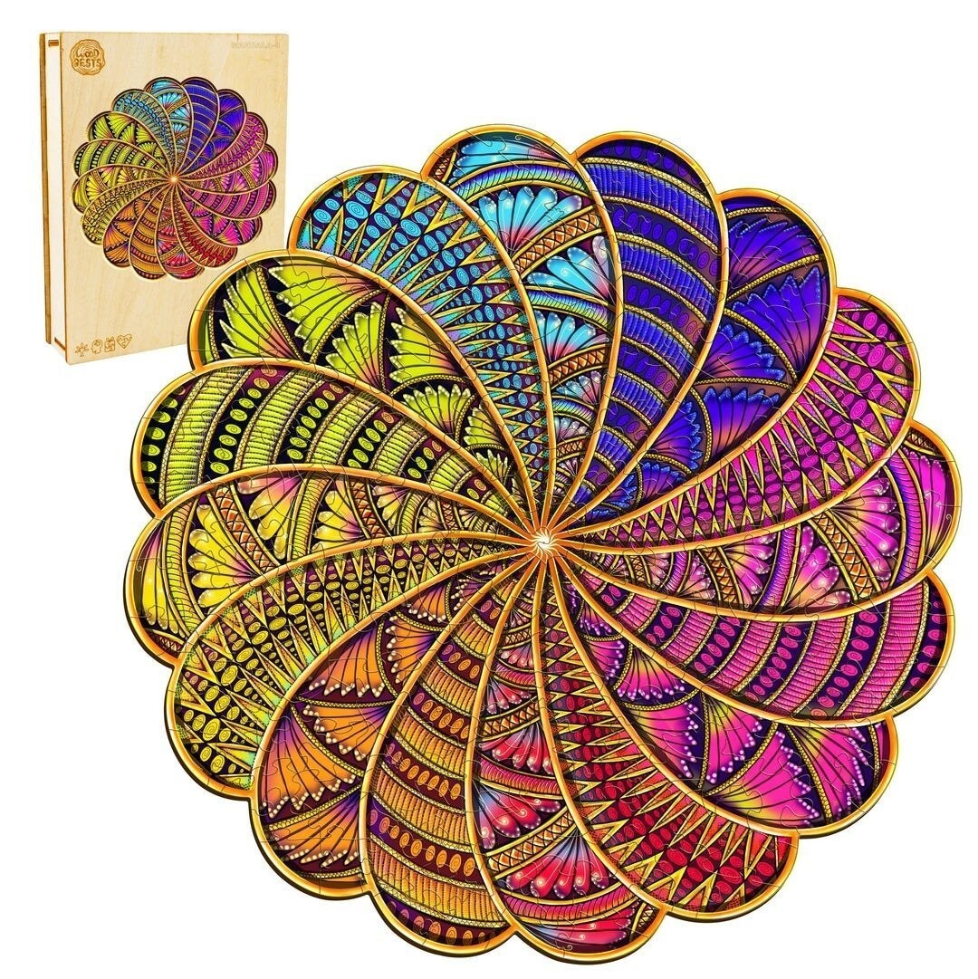 Ищете идею для подарка? Пазлы — это вечный и всегда хороший подарок. В красивой деревянной упаковке, с нежным ароматом свежего дерева, они являются красивым и эксклюзивным подарком и очаровывают с первого прикосновения. Познакомьтесь и полюбите наши деревянные пазлы!ДЕРЕВЯННЫЙ ПАЗЛ - МАНДАЛА ЦВЕТОВ