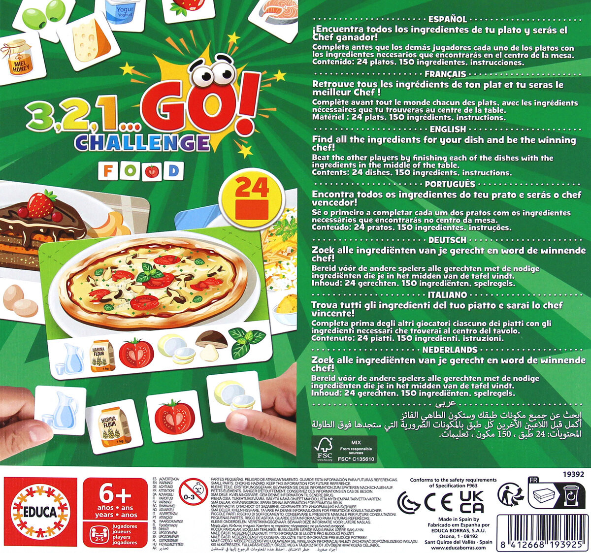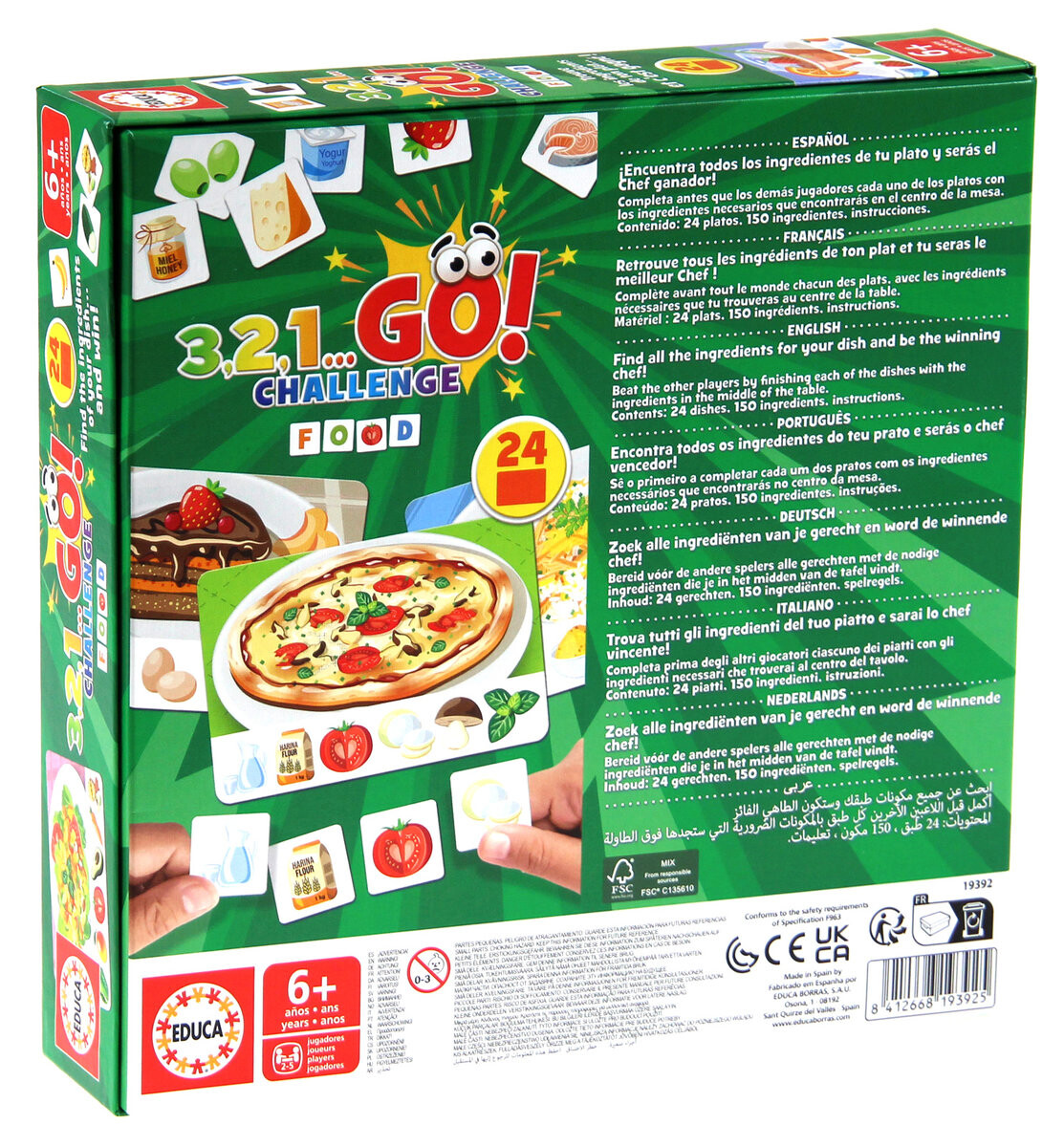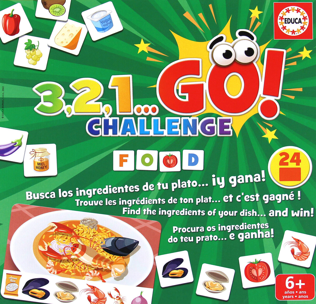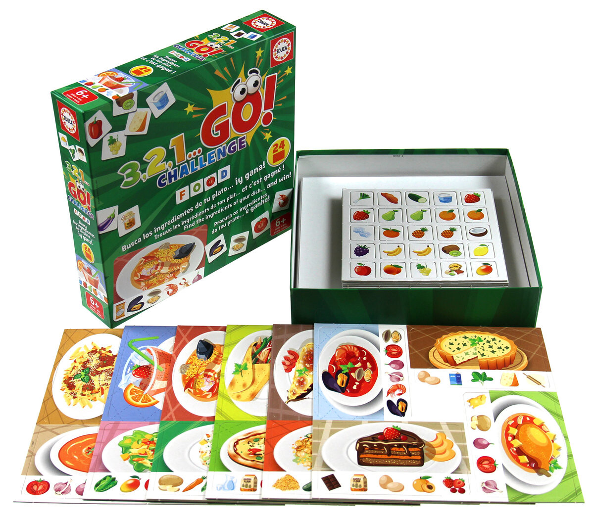 3 , 2 , 1… Вперёд! — серия быстрых игр для детей. В игре «Вызов: еда» есть три варианта, каждый из которых основан на восприимчивости и хорошей концентрации игроков. Первый – «Блюда к столу». В этом варианте у каждого игрока есть одна карта, обозначающая блюдо. Детали всех пазлов перемешаны и расположены в центре стола. По команде «3, 2, 1. . . Идти! » каждый раскрывает свои карты и начинает искать ингредиенты для своего блюда. Когда игрок первым соберет все ингредиенты, он выигрывает раунд. Игроки получают новые блюда для следующего раунда.