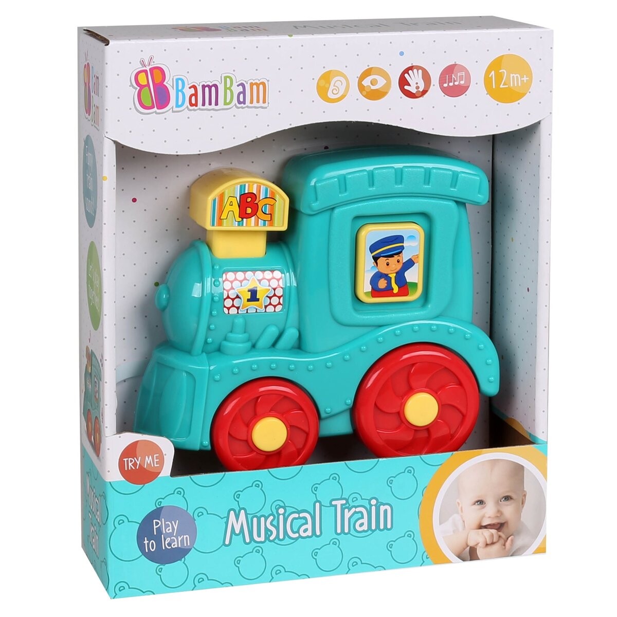 Музыкальный паровозик «Бам-Бам» — развивающая игрушка, предназначенная для детей старше 12 месяцев, которая выполняет функцию музыкальной шкатулки.