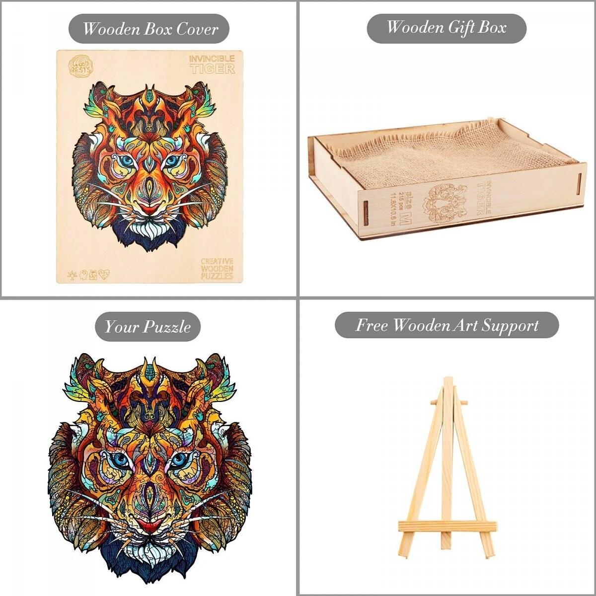 Ищете идею для подарка? Пазлы — это вечный и всегда хороший подарок. В красивой деревянной упаковке, с нежным ароматом свежего дерева, они являются красивым и эксклюзивным подарком и очаровывают с первого прикосновения. Познакомьтесь и полюбите наши деревянные пазлы! ДЕРЕВЯННЫЙ ПАЗЛ - НЕПОБЕДИМЫЙ ТИГР