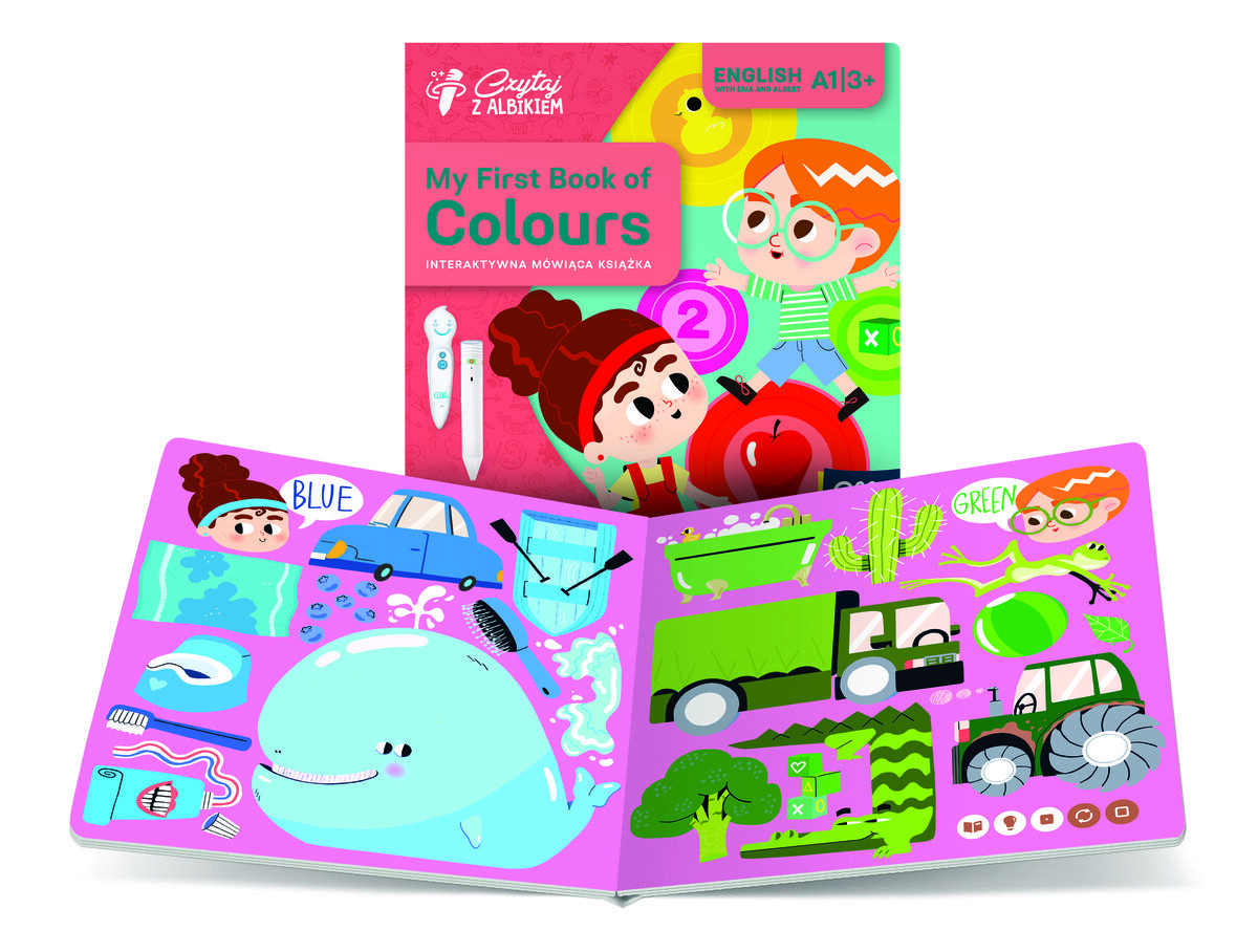 Эма и Альберт приглашают вас вместе изучать английский язык. Вместе с дружелюбными героями ребенок бродит по страницам, узнает о цветах и учится смешивать цвета, чтобы получать совершенно новые цвета. Эма и Альберт также расскажут ему названия одежды и многих предметов вокруг него. Стихи о цветах сделают обучение вашего ребенка более приятным, а красочные викторины станут прекрасной возможностью проверить свои знания. Учить английский с Альбиком — это очень весело!