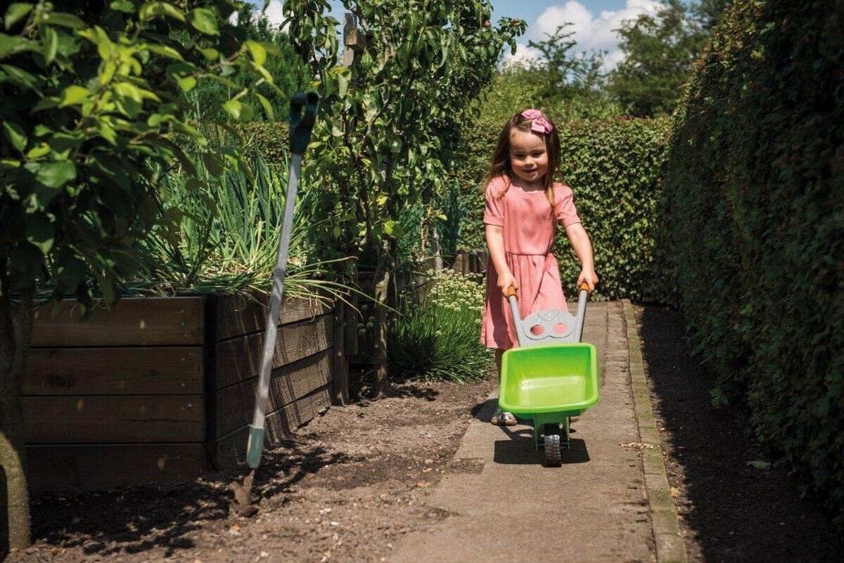 Линия игрушек доступна в красивых натуральных цветах и побуждает детей участвовать, исследовать и узнавать о повседневных занятиях, в которых участвуют взрослые. Дети могут поливать цветы, стричь газон или заниматься другими делами в саду. Услышанные звуки, пение птиц, прикосновения травы и природные запахи стимулируют чувства ребенка и влияют на его развитие. GREEN GARDEN развивает различные навыки, в том числе координацию движений и ловкость пальцев: «Зеленые пальцы, зеленый разум, зеленый сад»
