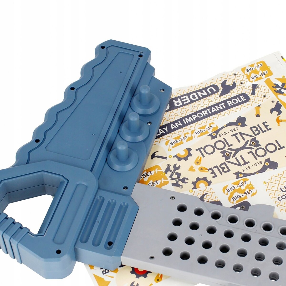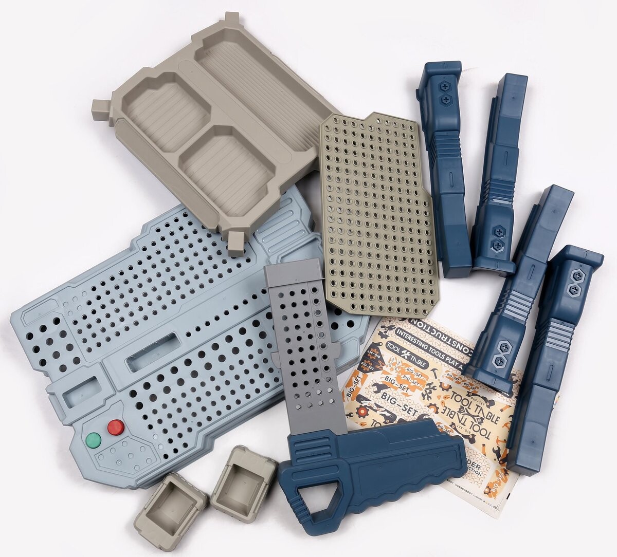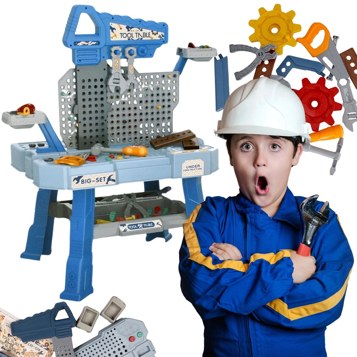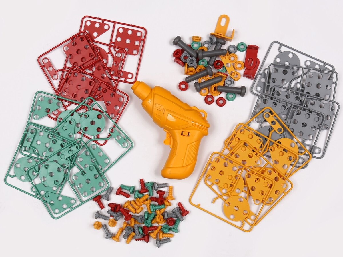 Этот мастер-класс, предназначенный для детей старше 3 лет, содержит 185 деталей, включая имитации реальных инструментов, таких как в виде молотка, гаечных ключей, шурупов и отвертки, которые позволяют проводить творческие и обучающие игры.