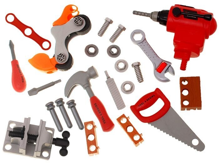 Обучающая игрушка, которая позволяет ребенку развивать навыки сопоставления фигур: каждый инструмент соответствует разной форме.
