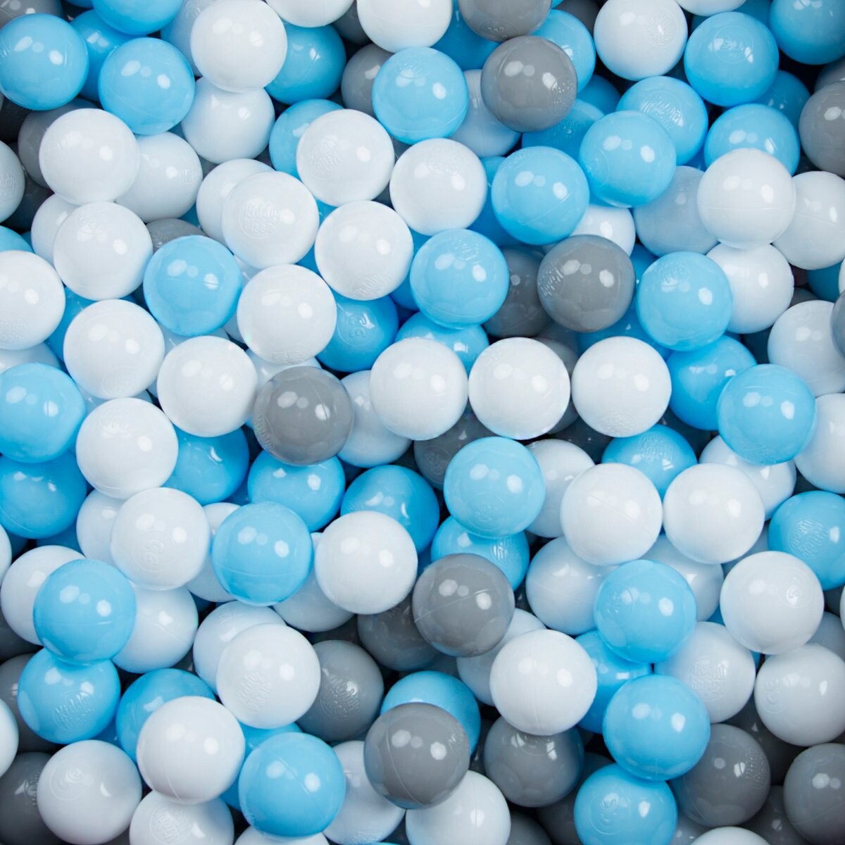 KiddyMoon, шарики пластиковые 6см серо-бело-голубые 1200/6см