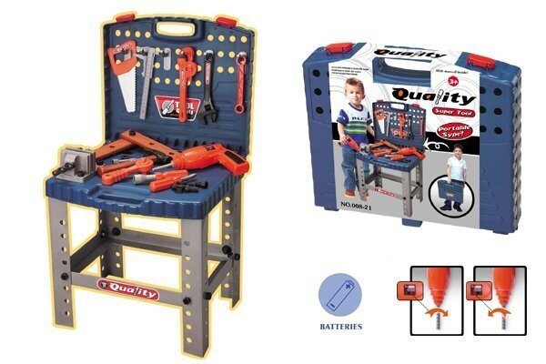 Вся игрушка помещается в удобный чемодан, который можно легко упаковать и перевезти в любое место.Столярная мастерская в чемодане порадует каждого маленького любителя DIY! Качество и безопасность
