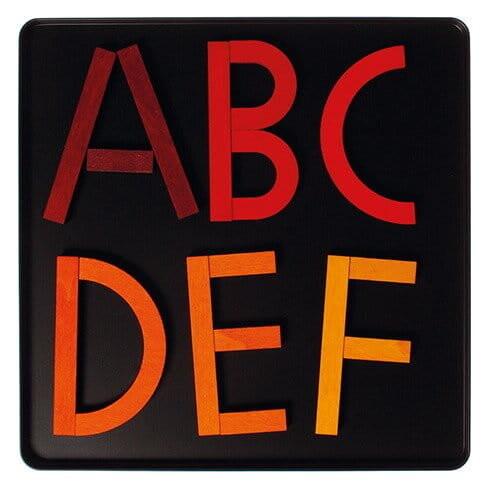 Магнитный пазл. Деревянные разноцветные кубики Гримм в металлической коробке. Набор можно комбинировать с другими магнитными пазлами братьев Гримм для создания сложных композиций. Позволяет располагать буквы.