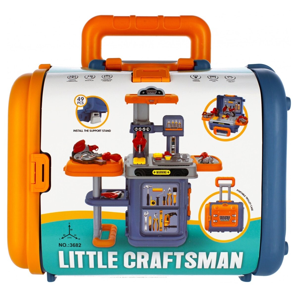 В набор входит 49 аксессуаров, включая инструменты и дополнительные элементы, такие как шурупы или доски. , все они изготовлены из безопасного пластика, идеально имитирующего настоящие инструменты.
