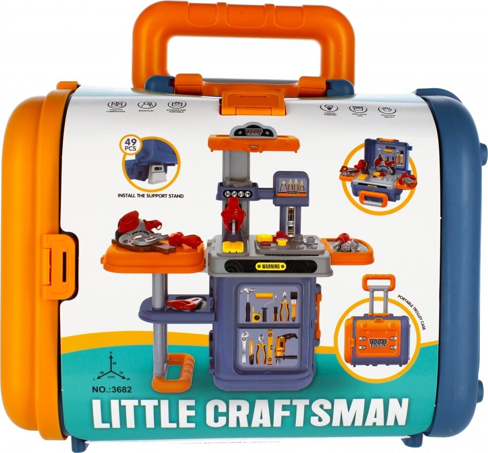 Достоинства товара: Мастерская с инструментами, благодаря которой ребенок может изучить возможности и функциональность простых инструментов, игрушка развивает мануальные навыки и пространственное мышление, набор заключен в чемодан на колесиках с ручкой для удобной переноски и перевозка инструментов. Благодаря возможности играть с МЕГА ТВОРЧЕСКОЙ Мастерской 3В1 ребенок уже в раннем возрасте научится использованию и возможностям простых инструментов, что сделает его более находчивым в будущем. Мастерская - креативная игрушка Мастерская в чемодане на колесах - это портативная мастерская со множеством необходимых инструментов для рукоделия, шкафом и полками для инструментов, это мастерская, которую можно упаковать в удобную коробку и взять с собой в путешествие. в саду, друзьям, чтобы продолжить свое приключение с мастерством Это практичные и необходимые инструменты, которые вы можете разложить на полках в своей комнате и использовать для ремонта и сборки многих необходимых вам вещей. В наборе 49 аксессуаров: мастерская своими руками, инструменты и дополнительные аксессуары, т.е. : пила, плоскогубцы, отвертка, молоток, ручная пила, гаечный ключ, винт и насадка для гаечного ключа, звездочки, шурупы, доски, канистра с топливом. . . все продукты являются имитацией реальных инструментов. Изделие из пластика. Предназначен для детей в возрасте: 3. Не требует питания от аккумулятора. Размеры упаковки: длина х высота х глубина см: 30х31х20, вес изделия в упаковке кг. 1,67 кг. Размеры изделия длина х высота х глубина см 60х66хх23. Вес изделия кг. 1,63 кг. . Упаковано в чемодан на колесах с ремешком. В коробке 12 штук.