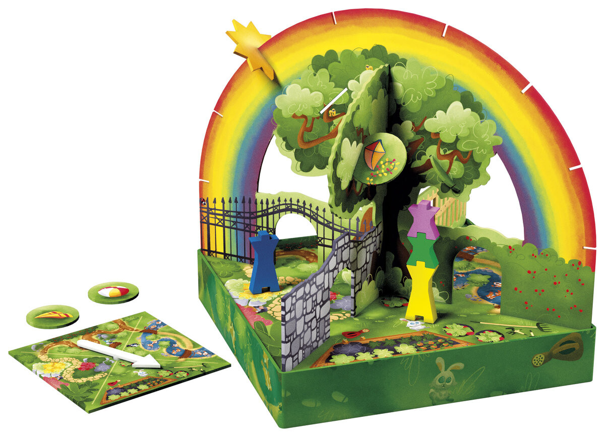 Игроки перемещают фишки по доске вокруг дерева и складывают фишки друг на друга, чтобы собрать 4 игрушечных жетона до того, как жетон солнца достигнет конца своей дорожки.