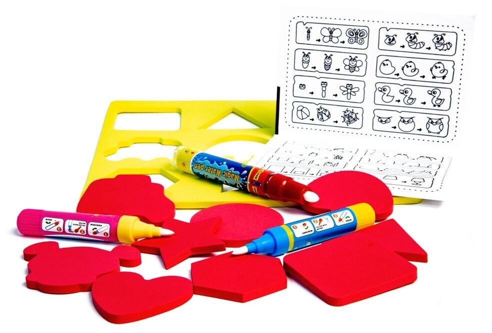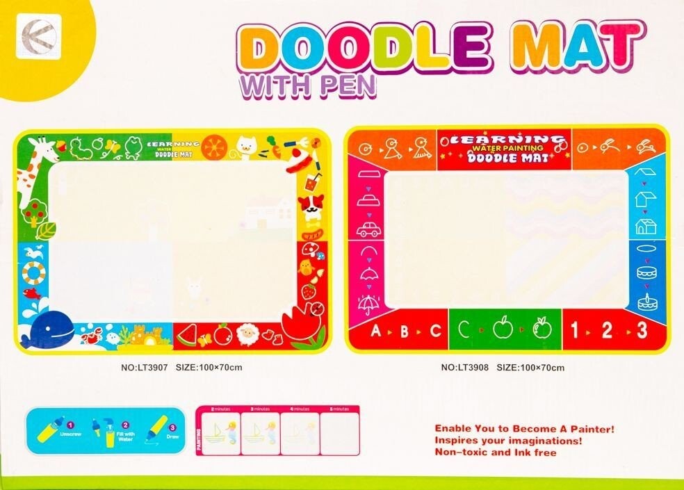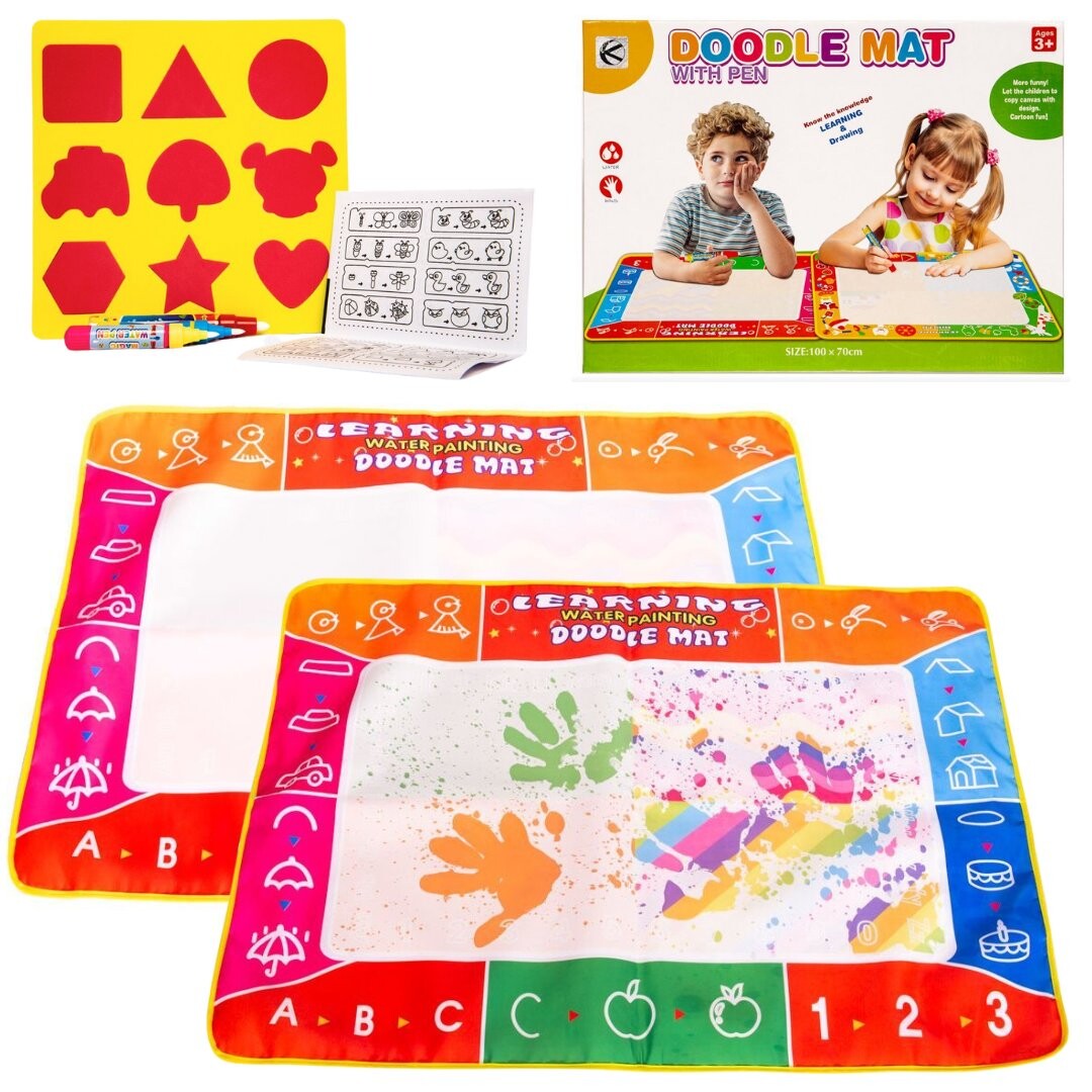 Набор для рисования водой — это не только развлечение, но, прежде всего, идеальная идея для поддержки развития вашего малыша. на различных уровнях его этапов. Коврик развивает воображение и стимулирует творческие способности, обеспечивая при этом радость и веселье. В комплект входят специальные многоразовые ручки, которые при наполнении водой не образуют грязи. После высыхания коврик готов к следующей игре и созданию различных красочных рисунков и узоров.