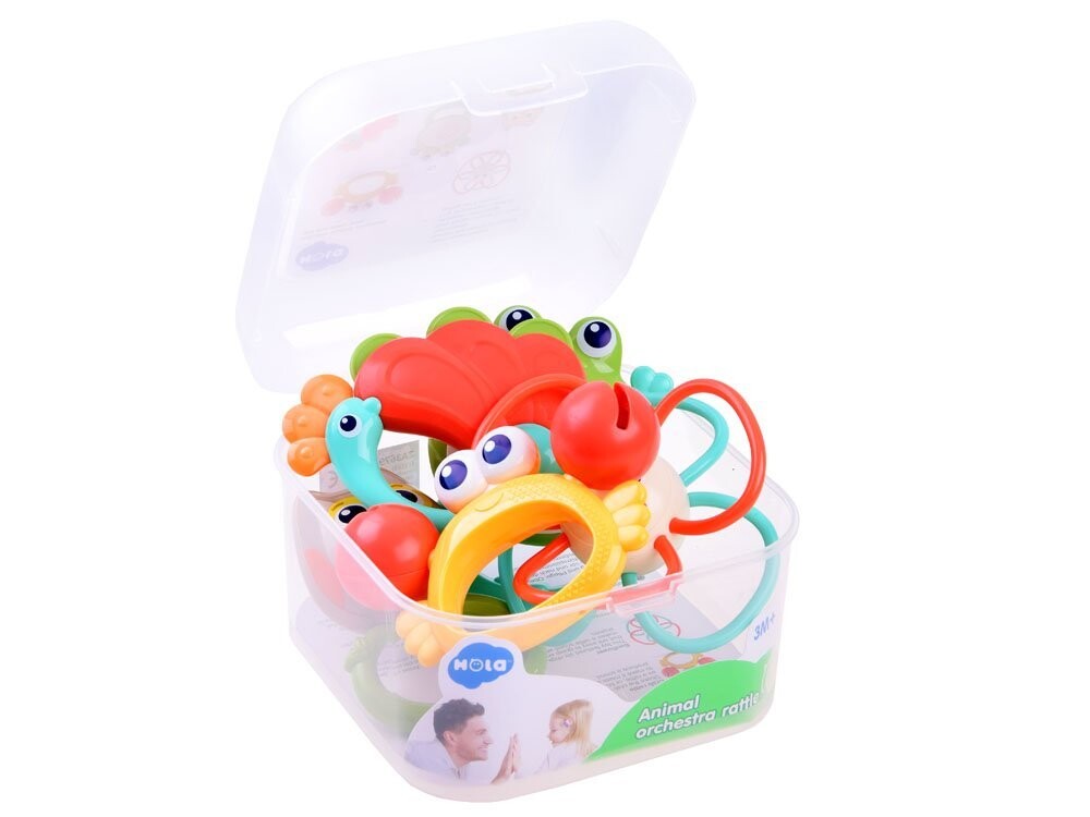Игрушки помогут развить у маленького ребенка зрительную, двигательную и слуховую координацию. Знакомство с различной степенью твердости погремушки визуально или на ощупь руками/ртом влияет на правильное развитие ребенка. Мягкие детали адаптированы к нежным детским деснам. Погремушка изготовлена из прочных и безопасных материалов (без острых краев). В набор входят 5 разных погремушек, упакованных в красивую оригинальную упаковку, которую можно хранить после игры.
