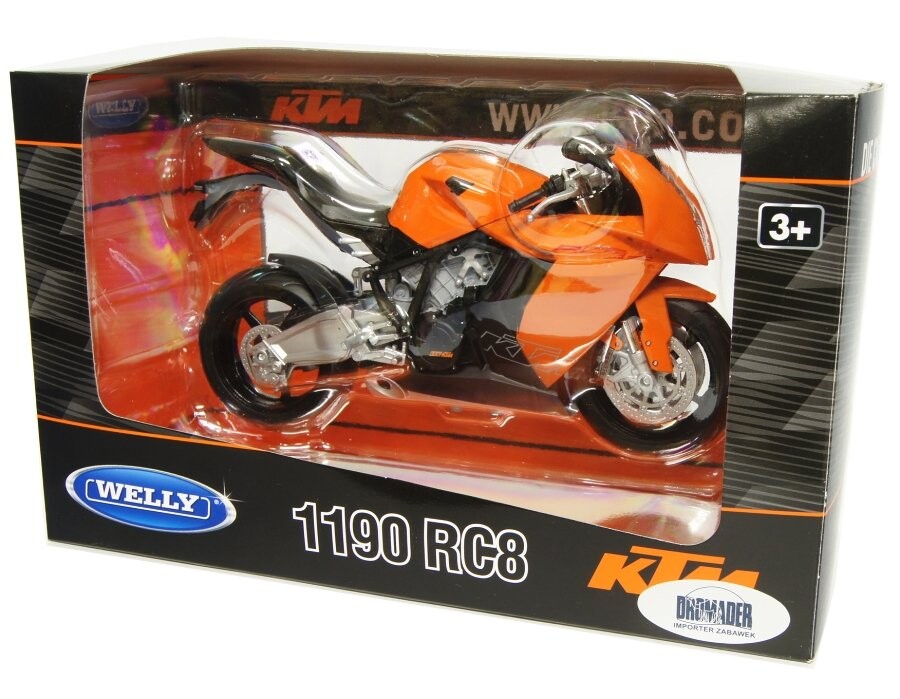 KTM 1190RC8 входит в коллекцию Welly. Металлическая модель с пластиковыми элементами.