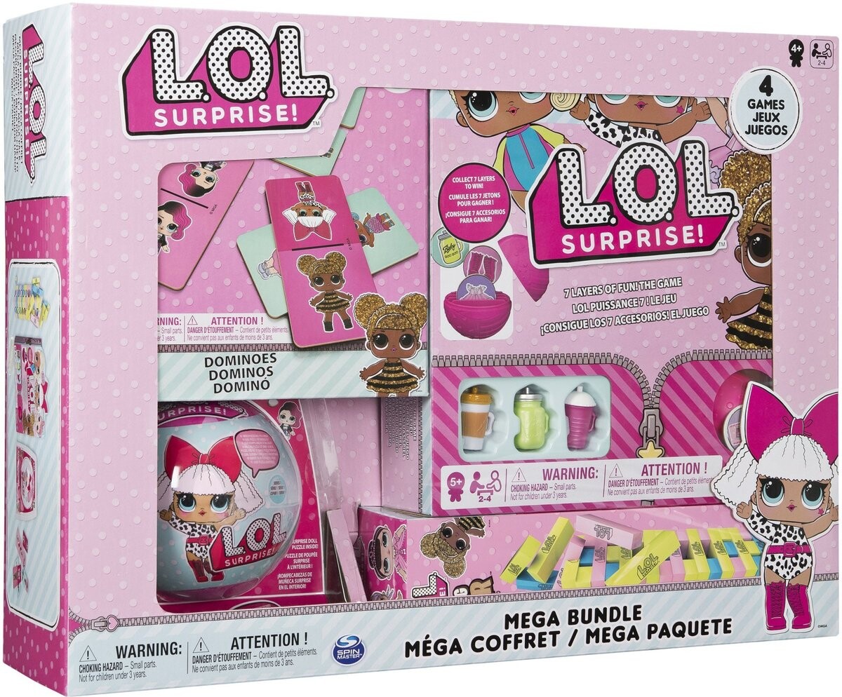 Спин Мастер 6054449 Л . Ой . Л. Мега-пакет Surprise содержит 4 игры — головоломку-сюрприз, Jambling Tower, 7 Layers of Fun, Dominoes. Ой . Л. Набор-сюрприз создан известным и уважаемым брендом Spin Master, известным своими качественными игрушками. Это отличное предложение для всех маленьких коллекционеров. Удовольствие от игры начинается с распаковки игрушки.