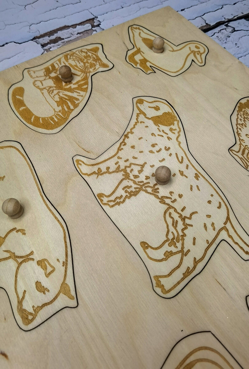 Как играть:- Сопоставление животных:Ребенок размещает реалистичных животных в нужных местах на подставке, тренируя точность. и координация.