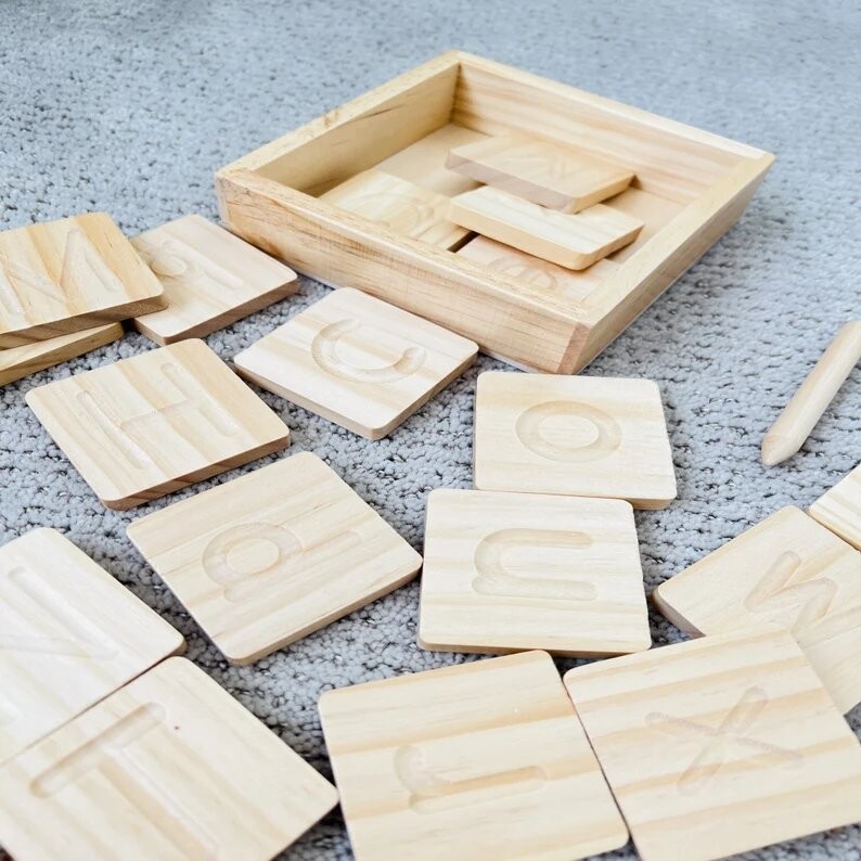 На плитках вырезаны буквы, благодаря которым ребенок может практиковаться почерк, следуя по следам, учится распознавать буквы, знакомится с правописанием, развивает точность и навыки письма, одновременно задействуя чувство зрения и осязания.