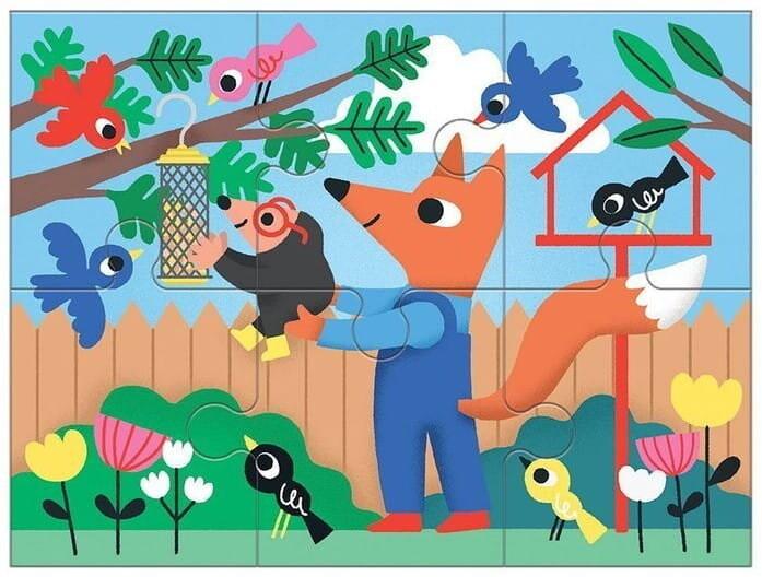 В пазлах становится все больше деталей(4, 6, 9 и 12), благодаря чему дети постепенно учатся справляться со все более сложными головоломками.