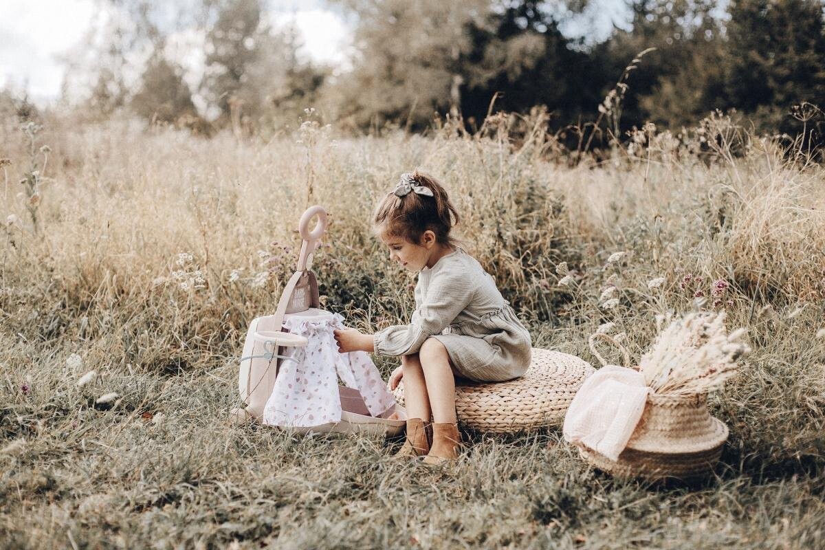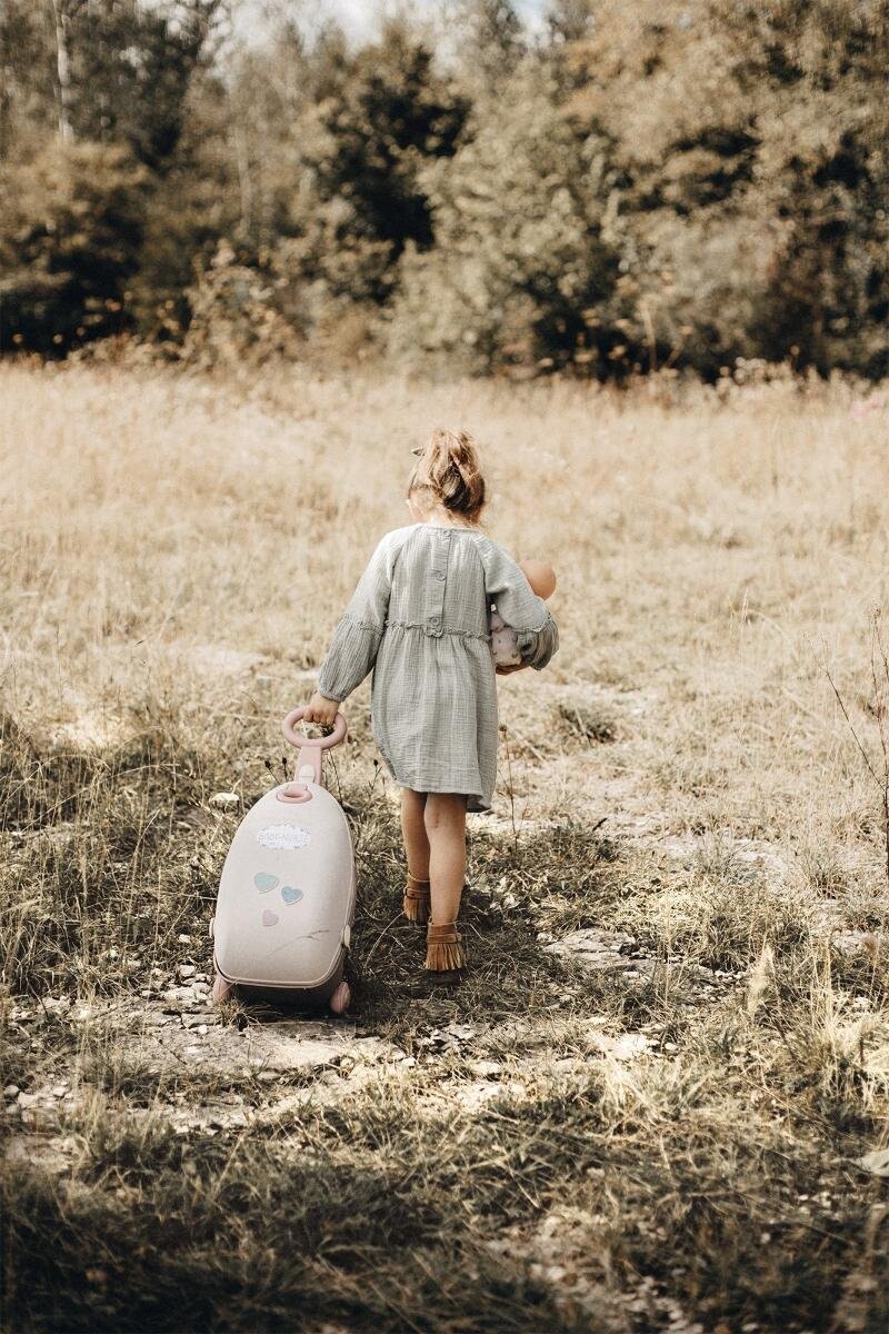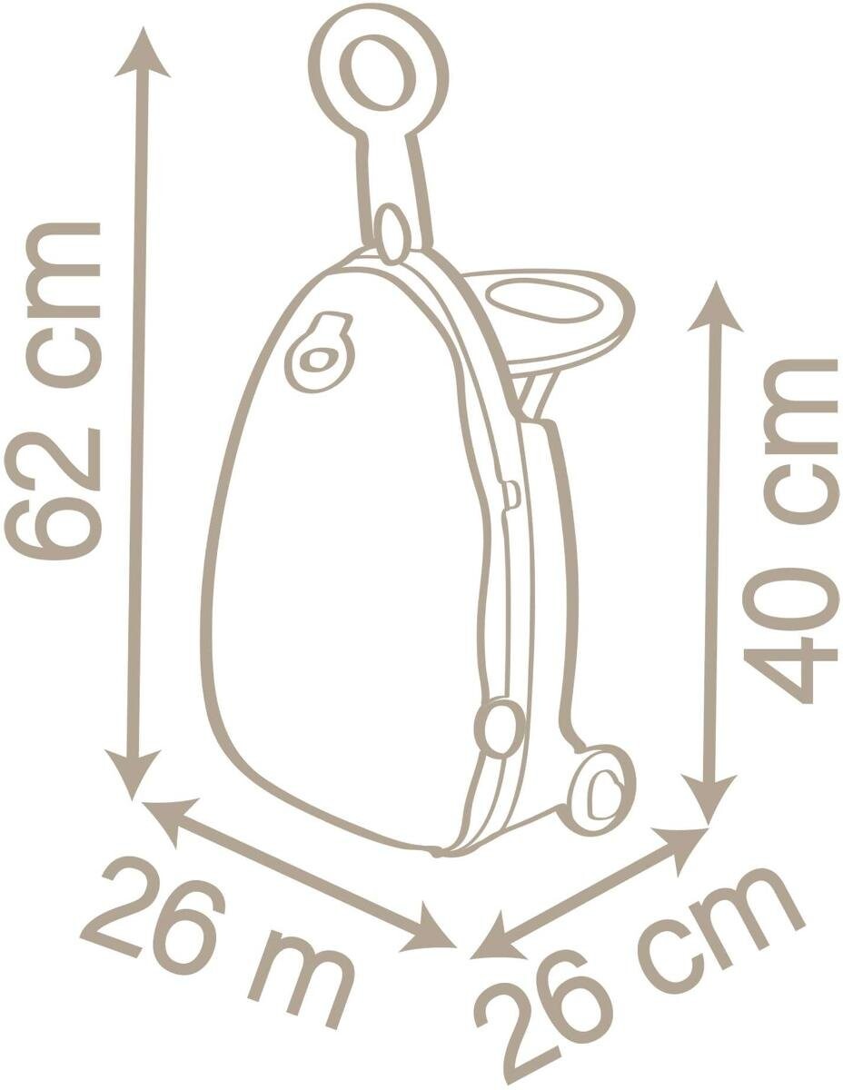 Чемоданвыдержан в пастельных тонах а раскладываясь превращается в стульчик для кормления и игр со столиком. Вторая часть чемодана превращается в кукольную кровать с балдахином и одеялом. По бокам чемодан оснащен практичными полками, на которых можно разместить мелкие вещи или повесить вешалки для одежды.