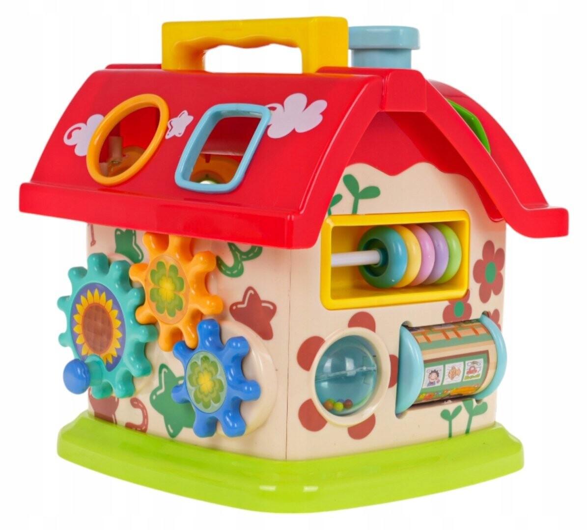 Многофункциональный игровой домик с сортером для детей от 18 месяцев. Игрушка изготовлена из высококачественного пластика ярких цветов, побуждая ребенка к развивающим играм. Игра с домиком развивает двигательные функции детей, учит распознавать цвета и формы, развивает пространственную ориентацию и учит логическому мышлению. Дом состоит из красной крыши и четырех стен.