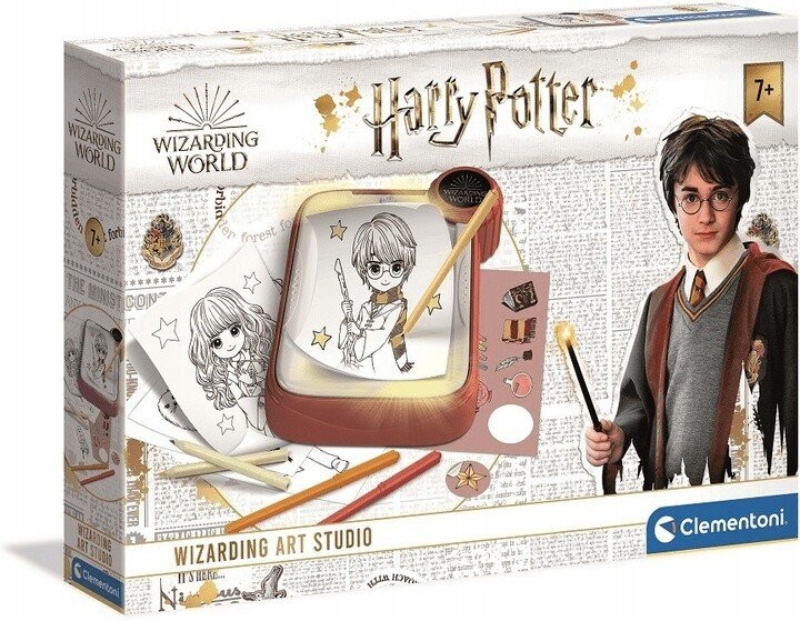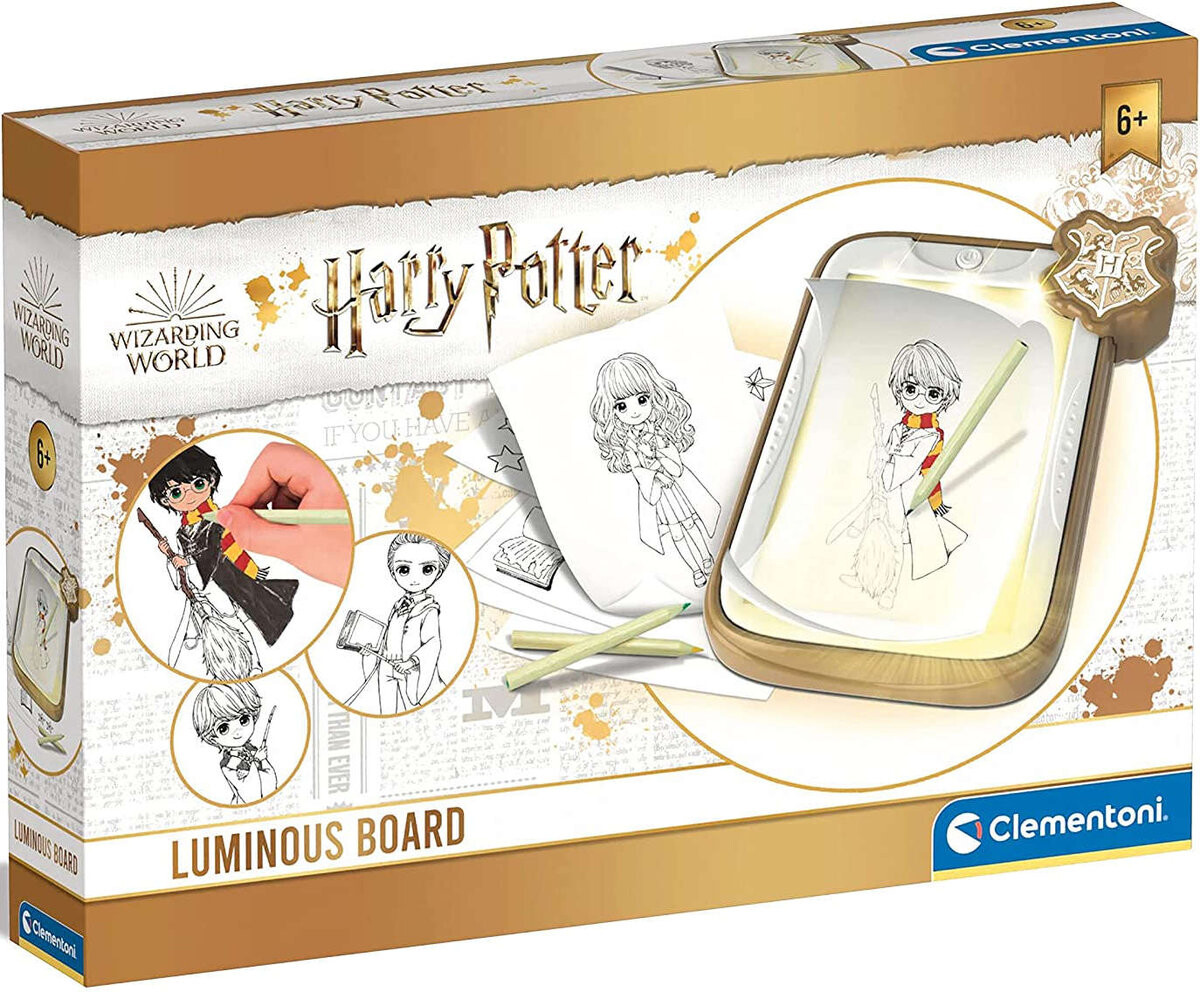 • В комплекте: светящаяся доска, рисунки с изображениями, изображающими мир Гарри Поттера, листы, карандаш и красочная пастель.