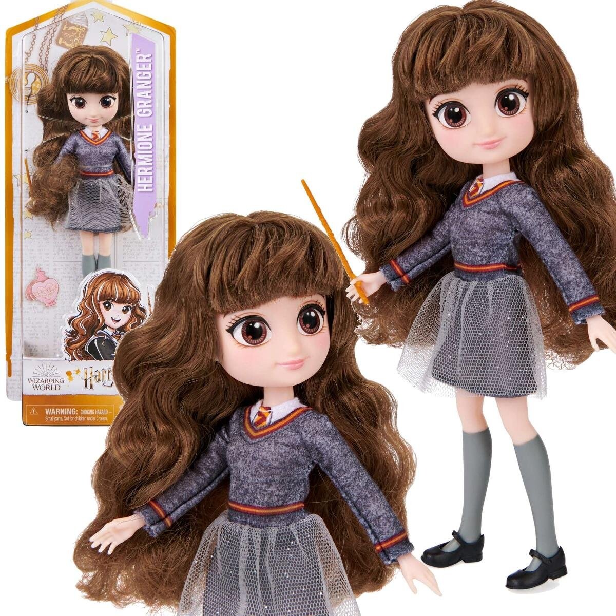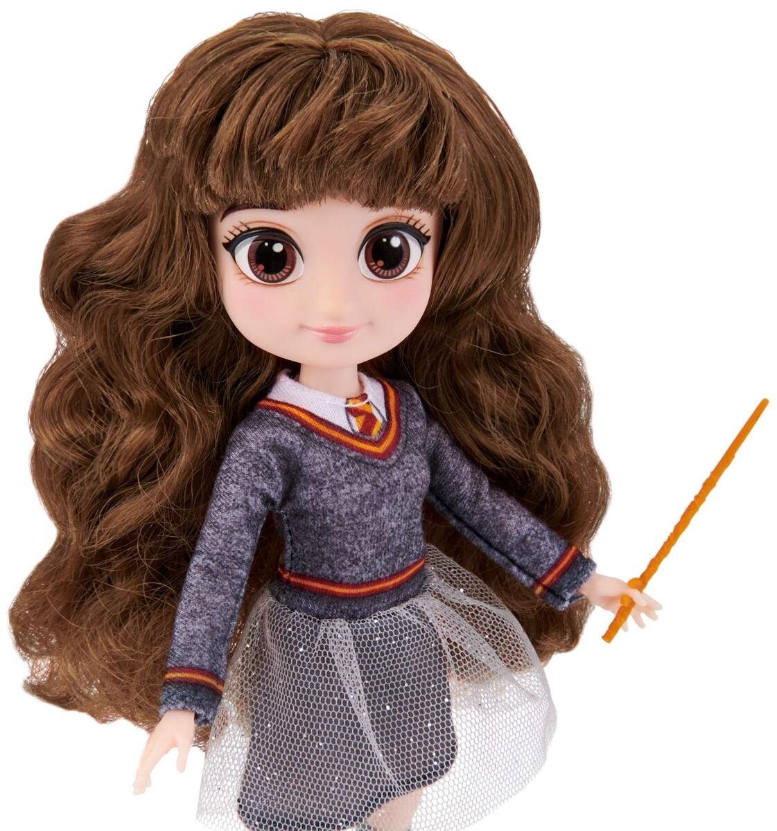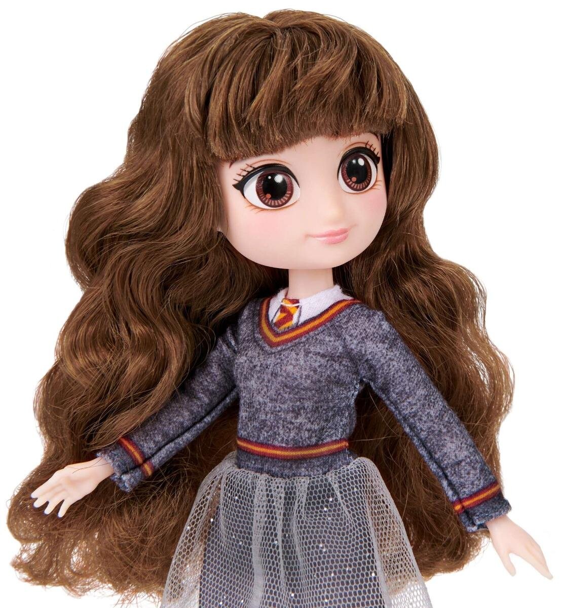 Она одета в серую форму Гриффиндора с мерцающей юбкой. Он держит в руке палочку. Высота куклы примерно 20 см.
