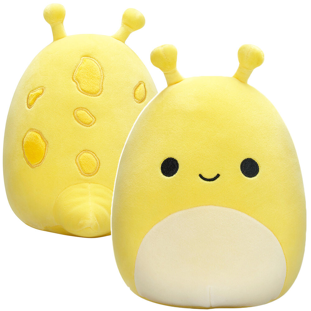 Зарина — банановая улитка с желтым телом и более светлым брюшком. У него две усики на голове и семь темно-желтых пятен на спине. У него круглые черные глаза и черные улыбающиеся губы. Что отличает мягкие игрушки Squishmallows?
