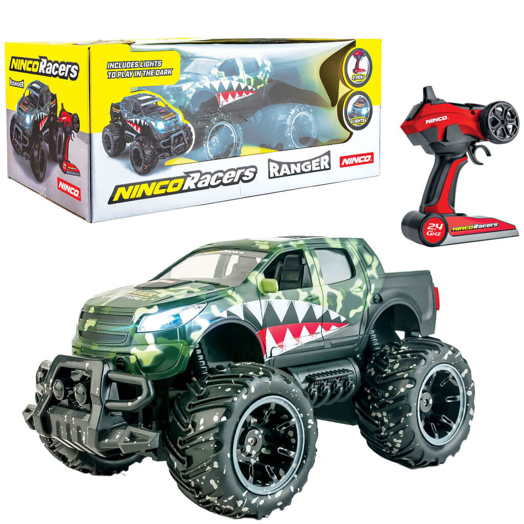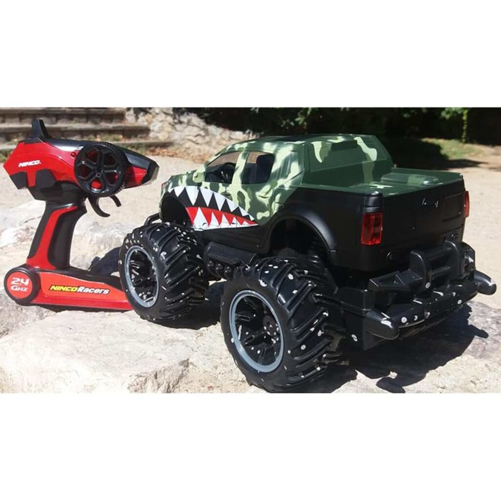 Монстр-трак Ninco Ranger с дистанционным управлением позволяет совершать потрясающие повороты. Радиоуправляемый грузовик-монстр имеет классную зеленую цветовую гамму и рисунок зубов по бокам. Благодаря технологии 2,4 ГГц вы можете соревноваться с другими соперниками.
