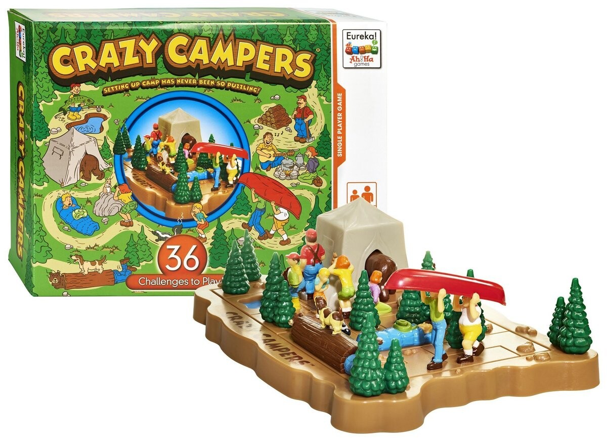 «Crazy Camp» был вдохновлен классической логической головоломкой под названием «Пентомино». Хотя первая головоломка на основе пентамина была представлена английским изобретателем Генри Эрнестом Дьюдени в 1907 году, мы должны поблагодарить Соломона В. Голомбу за изобретение пентаминов в 1953 году и за название их двенадцати уникальных форм пента. Как и в оригинальной головоломке, «Безумный лагерь» основан на элементах, основа которых состоит из одинаковых квадратов, соединенных ребрами.