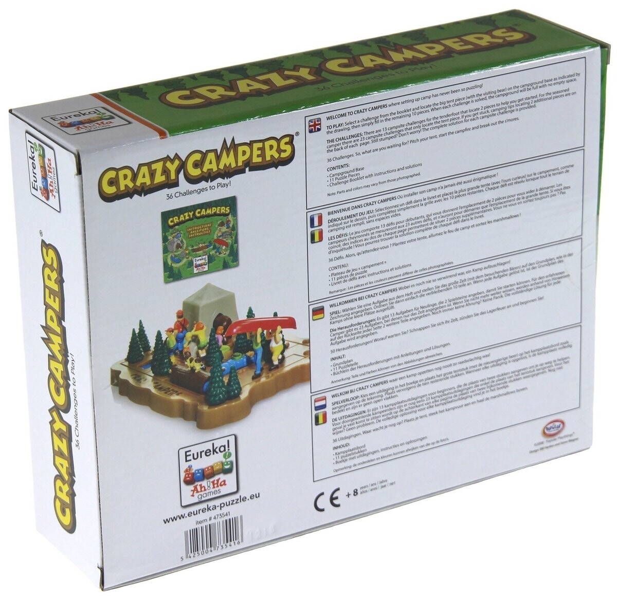 В каждом задании показано, где на доске вам следует разместить кусок палатки и . . . медведь смотрит в него. Правильное размещение палатки на доске имеет решающее значение, потому что если оно неправильное, головоломку невозможно решить. Затем добавляются оставшиеся десять элементов. Когда задача будет успешно решена, на доске не останется пустого места.