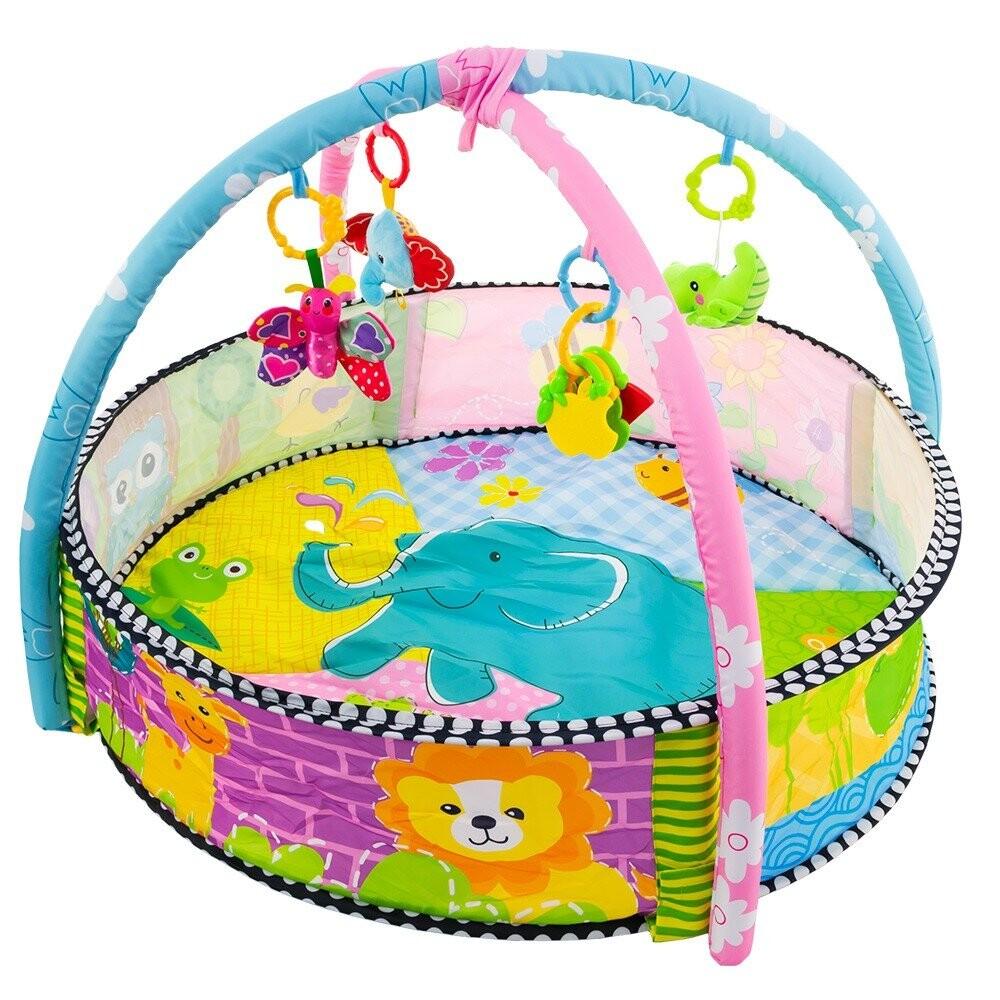 Коврик для бассейна имеет множество элементов, которые стимулируют ребенка к игре. Подвесные игрушки являются съемными, и ваш ребенок может играть с ними самостоятельно. Коврик для бассейна изготовлен из очень приятного на ощупь материала. Красочная графика пробуждает любознательность ребенка и помогает развивать его зрение. В комплект поставки входят шарики, которые можно выливать в бассейн.