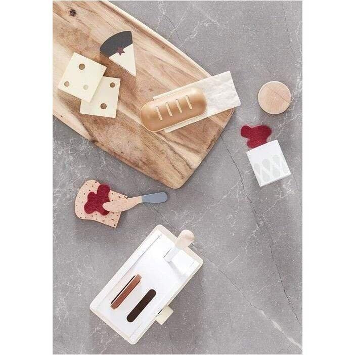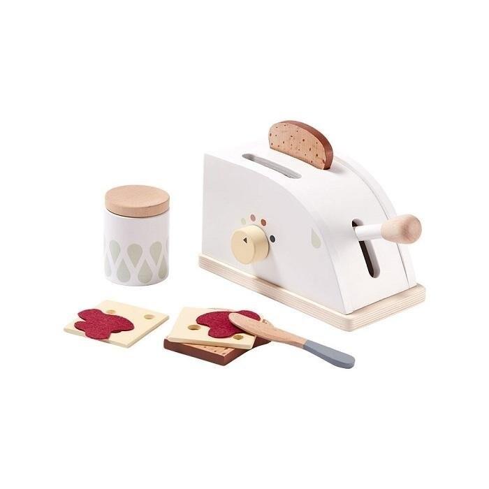 Деревянная игрушка – отличная идея для детей от 3 лет, которые с удовольствием помогают родителям на кухне. В набор входят 8 аксессуаров: тостер, два ломтика хлеба, 2 ломтика сыра, баночка с вареньем и нож для намазывания. Чтобы нарезать ломтики в тостере, нажмите на рычаг сбоку устройства, поверните ручку, чтобы установить температуру, и тост готов :) Все тщательно обработано и безопасно в использовании. Пригласите всех своих лучших друзей на вкусный тост. Продукт предназначен для детей старше 3 лет. которые любят весело проводить время, готовя еду и принимая гостей. Игра с набором развивает моторику и воображение ребенка. Игрушка вдохновляет детей на творческую игру. Очаровательно упакованный в картонную коробку, он станет прекрасным подарком.