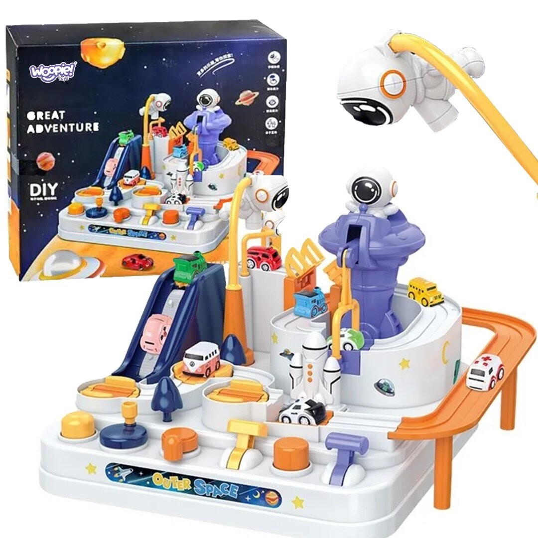 Интерактивная полоса препятствий « Приключение космонавта» – необыкновенный подарок для маленьких исследователей, желающих захватывающих приключений и незабываемых испытаний. Это больше, чем просто игрушка – это настоящая арена, где дети смогут играть роль водителей и преодолевать различные препятствия. Благодаря продуманному дизайну и разнообразным элементам игрушка подарит незабываемые моменты, полные волнений и испытаний. Это идеальный инструмент для развития воображения и ручных навыков, который в то же время доставляет массу удовольствия. Автомобильная трасса предусматривает не только возможность поездок, но и динамические, интерактивныеэлементы, которые управляются с помощью кнопок и ручек. Это увлекательная игра, требующая концентрации и ловкости. В набор входят три машинки. который может свободно исследовать трассу, в зависимости от воображения малыша. Транспортные средства разнообразят веселье или позволят детям посоревноваться на трассе. Пересечение трассы кажется легким, но многочисленные элементы, такие как шестеренки или разводные мосты, сделают путешествие полным адреналина .