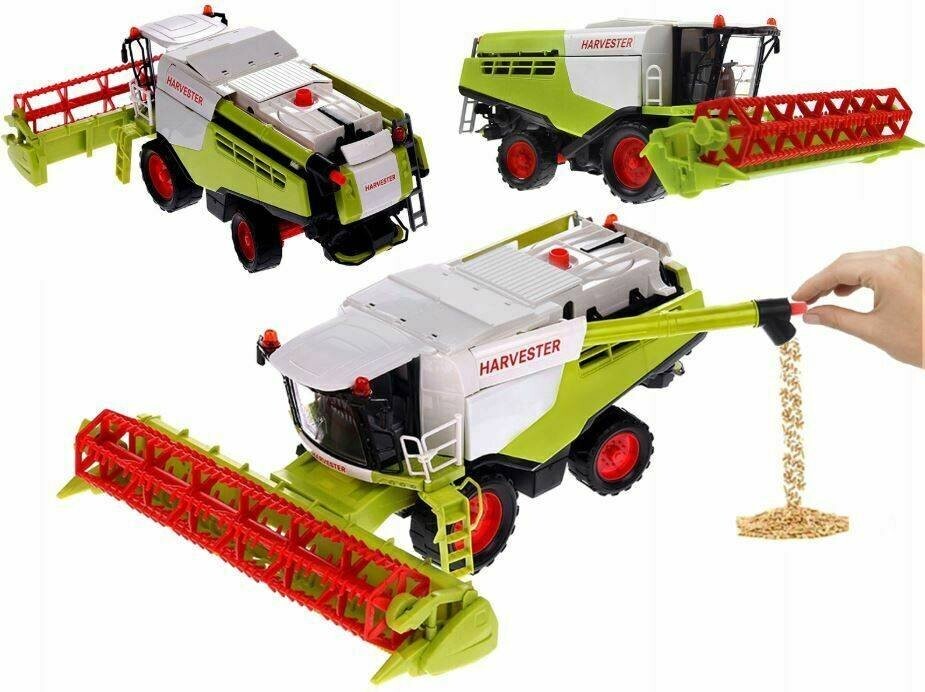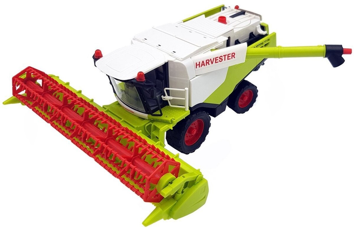 Игрушка очень тщательно и эстетично сделана, идеальна для игр дома и на природе. Комбайн имеет множество движущихся частей. Он выполнен с максимально возможным воспроизведением деталей реального автомобиля. Размеры: прибл. :