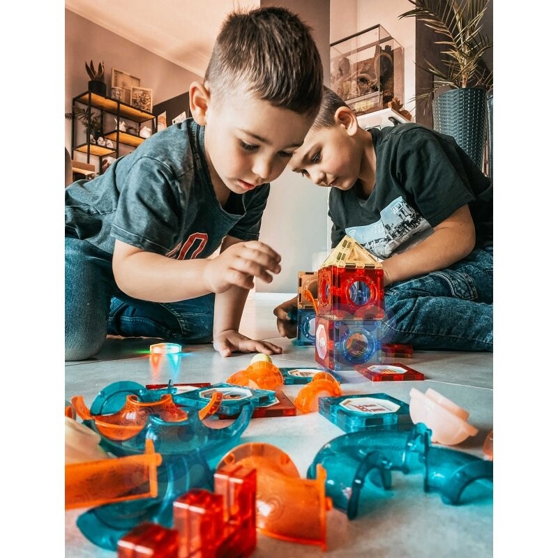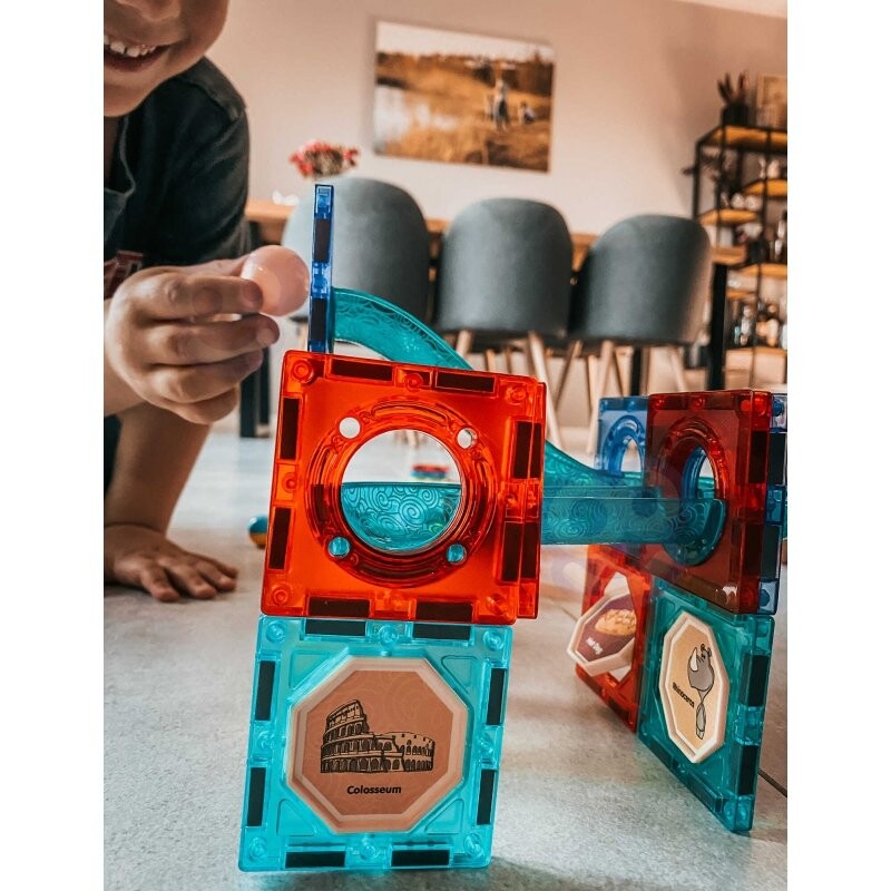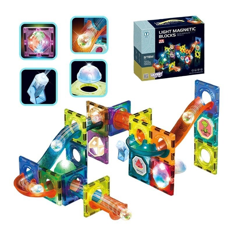 Магнитные блоки от бренда WOOPIE привлекут внимание и увлекут вашего ребенка. Блоки очень легко соединяются друг с другом, из них можно создавать замечательные конструкции с горками, например: путь, по которому движется мяч. Дорожку можно подсветить включенным фонариком, чтобы сделать ее еще более впечатляющей, а ребенок сам потом сможет наблюдать, как движется свет, что будет развивать восприятие. Простое расположение дорожки так, чтобы шарики без проблем доходили до конца, разовьет у ребенка логическоемышление, воображение. креативностьи сосредоточенность напри создании структуры. Расставляя блоки, ребенок изучает формы и цвета, а также тренирует так называемые ручные навыки. мелкая моторика .