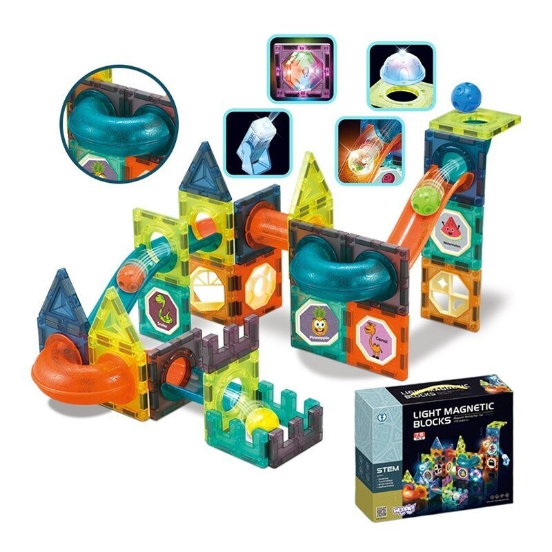 Магнитные блоки от бренда WOOPIE привлекут внимание и увлекут вашего ребенка. Блоки очень легко соединяются друг с другом, из них можно создавать замечательные конструкции с горками, например: путь, по которому движется мяч. Дорожку можно подсветить включенным фонариком, чтобы сделать ее еще более впечатляющей, а ребенок сам потом сможет наблюдать, как движется свет, что будет развивать восприятие. Простое расположение дорожки так, чтобы шарики без проблем доходили до конца, разовьет у ребенка логическоемышление, воображение. креативностьи сосредоточенность напри создании структуры. Расставляя блоки, ребенок изучает формы и цвета, а также тренирует так называемые ручные навыки. мелкая моторика .