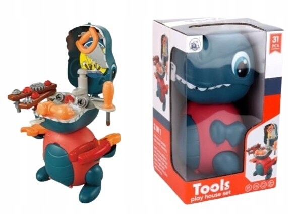 Знакомьтесь Динозавр с инструментами Уникальная игрушка, сочетающая в себе мир доисторических существ и творческое развлечение! У этого необычного динозавра есть открывающаяся голова, в которой спрятаны разноцветные инструменты, которые ваш ребенок сможет обнаружить. Созданная для детей игрушка помогает развивать когнитивные навыки , такие как моторика, логическое мышление и зрительно-моторная координация.