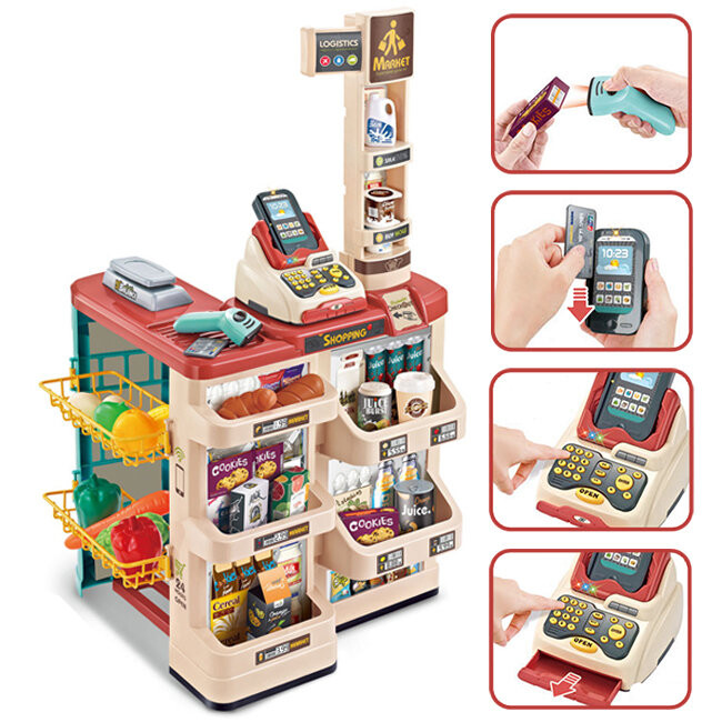 Супермаркет с тележкой для покупок со множеством дополнительных аксессуаров от бренда Woopie. Идеальная идея для детей от 3 лет. Дети любят подражать своим родителям в повседневных обязанностях, поэтому это идеальный набор для вашего ребенка и дополнительный шанс не только развлечься, но и чему-то научиться ( ролевые игры очень развивают воображение и творческие способности малыша. ). В комплект входят все необходимые элементы для оснащения небольшого рабочего места продавца, в том числе: кассовый аппарат с терминалом, весы и сканер. платежная карта и многочисленные продукты питания. Входящая в комплект корзина покупок позволит вам весело провести время с друзьями, где бы и когда бы они ни находились!