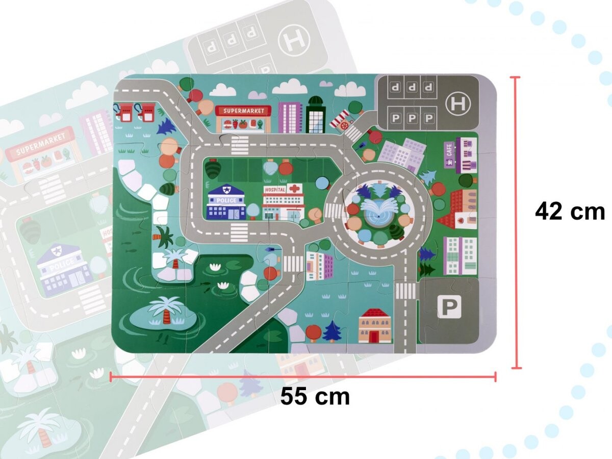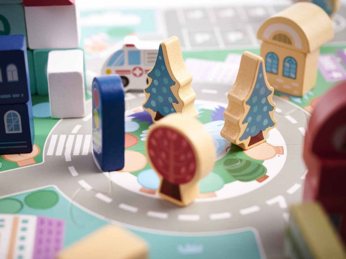 В городе должно быть самое главное – улицы и машины. В комплект входит пазл который при расстановке создаст доску с полосой улиц. Они станут прекрасным дополнением всего. Набор разноцветных кубиков – предложение для творческого и развивающего развлечения. Они прекрасно стимулируют воображение, поощряют логическое, нестандартное мышление и способствуют правильному развитию ручных навыков ребенка. Они также идеально подходят для обучения счету и изучению названий цветов. Вы можете быть уверены, что вашему ребенку не придется скучать.