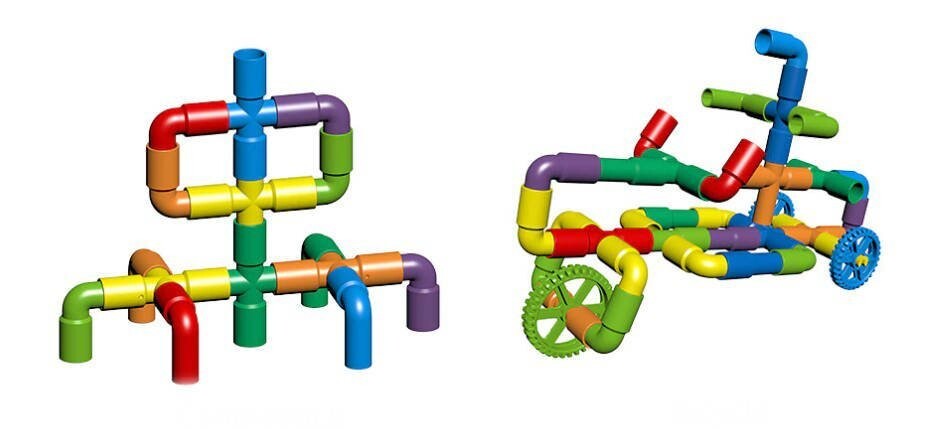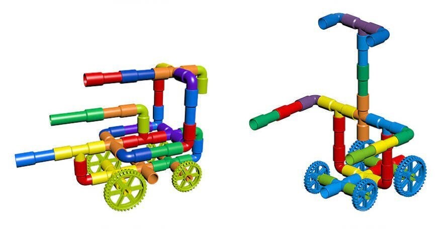 Игра с этими «блоками» — бесконечное приключение. Возможность самостоятельной сборки и свобода перестановки элементов конструкции доставит вашему ребенку огромное удовлетворение, он будет гордиться тем, что построил, например, велосипед и придал ему форму. И более того может творить снова и снова, реализуя новые проекты.Простое соединение