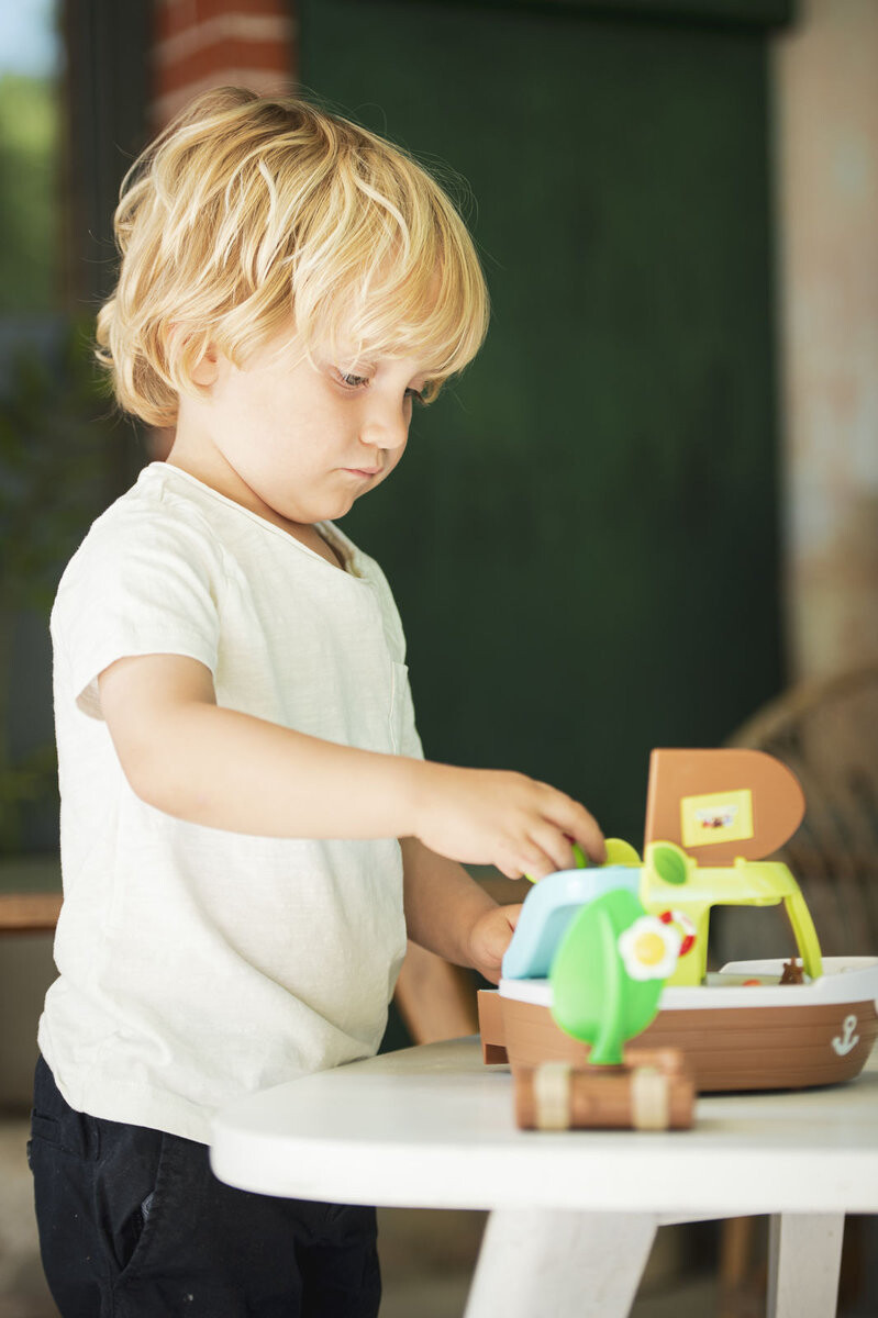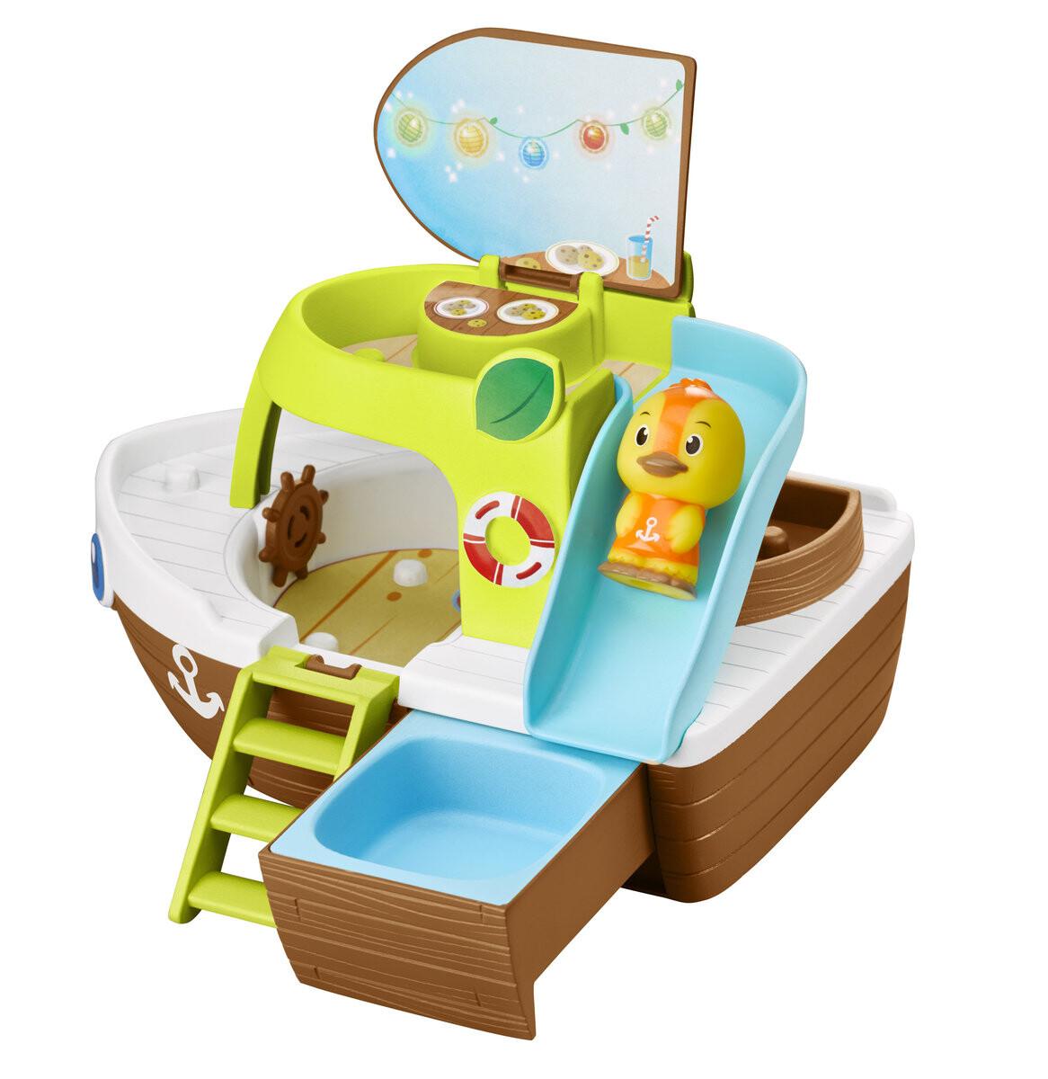 Круизный корабль. Природа – это волшебство. Каждое утро солнце восходит в волшебном мире Клорофилла, где милые животные живут в гармонии с природой, переживая множество приключений. Время отдыха у реки. Лучшее место, чтобы вместе отдохнуть и развлечься у воды – на очаровательном круизном лайнере. Вытащите лестницу и заберитесь на борт корабля. Откройте крышу, чтобы создать место для пикника, и вытащите бассейн, в который животные смогут скатиться с горки. Есть даже небольшая спасательная шлюпка. . . на всякий случай! В комплект входят: круизный лайнер с бассейном, одно животное, спасательная шлюпка и выдвижная лестница. Колеса спрятаны под кораблем благодаря чему игрушка будет плавно двигаться. Игрушка для детей от 18 мес. Рекомендуем протирать поверхность игрушки мыльным раствором и влажной тряпкой. Круизный лайнер: игрушечный круизный лайнер с движущимися частями. Он развивает моторику, поощряет творческую игру и рассказывание историй. Откройте крышу, чтобы открыть место для пикника. Расширяемый бассейн. Передвижная лестница. Под кораблем спрятаны колеса, благодаря которым игрушка будет плавно передвигаться. В комплект входят: круизный лайнер с бассейном, одно животное, спасательная шлюпка и выдвижная лестница. Игрушка от производителя Жирафа Софи. Для детей 18 мес.+.