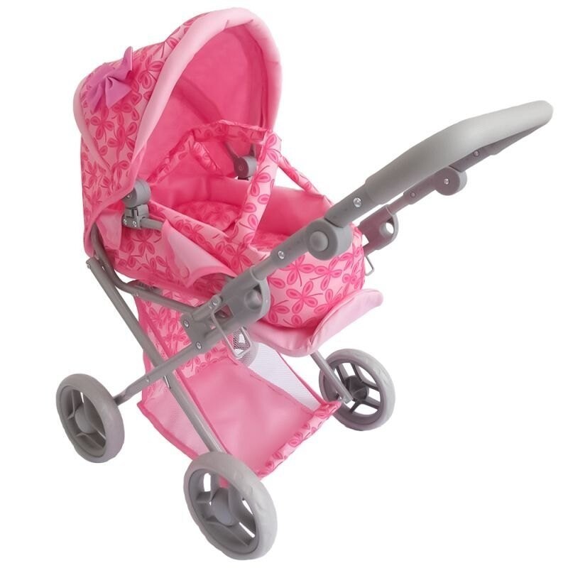Коляска двойного назначения с люлькой и балдахином для кукол изготовлена из высококачественных материалов. Коляску можно сложить как прогулочную коляску или использовать с детской переноской в качестве гондолы. Удобная ручка из пенопласта регулируется по высоте, поэтому ее можно легко отрегулировать под рост ребенка. В коляске имеется большая съемная корзина для других игрушек. Прочная металлическая конструкция гарантирует долговечность игрушки. Конструкция коляски может складываться. Игрушка упакована в картонную коробку.