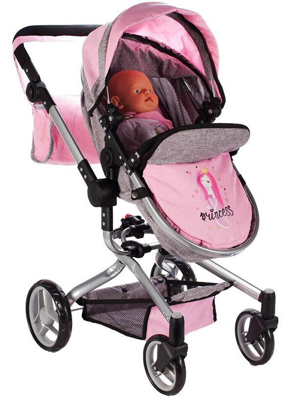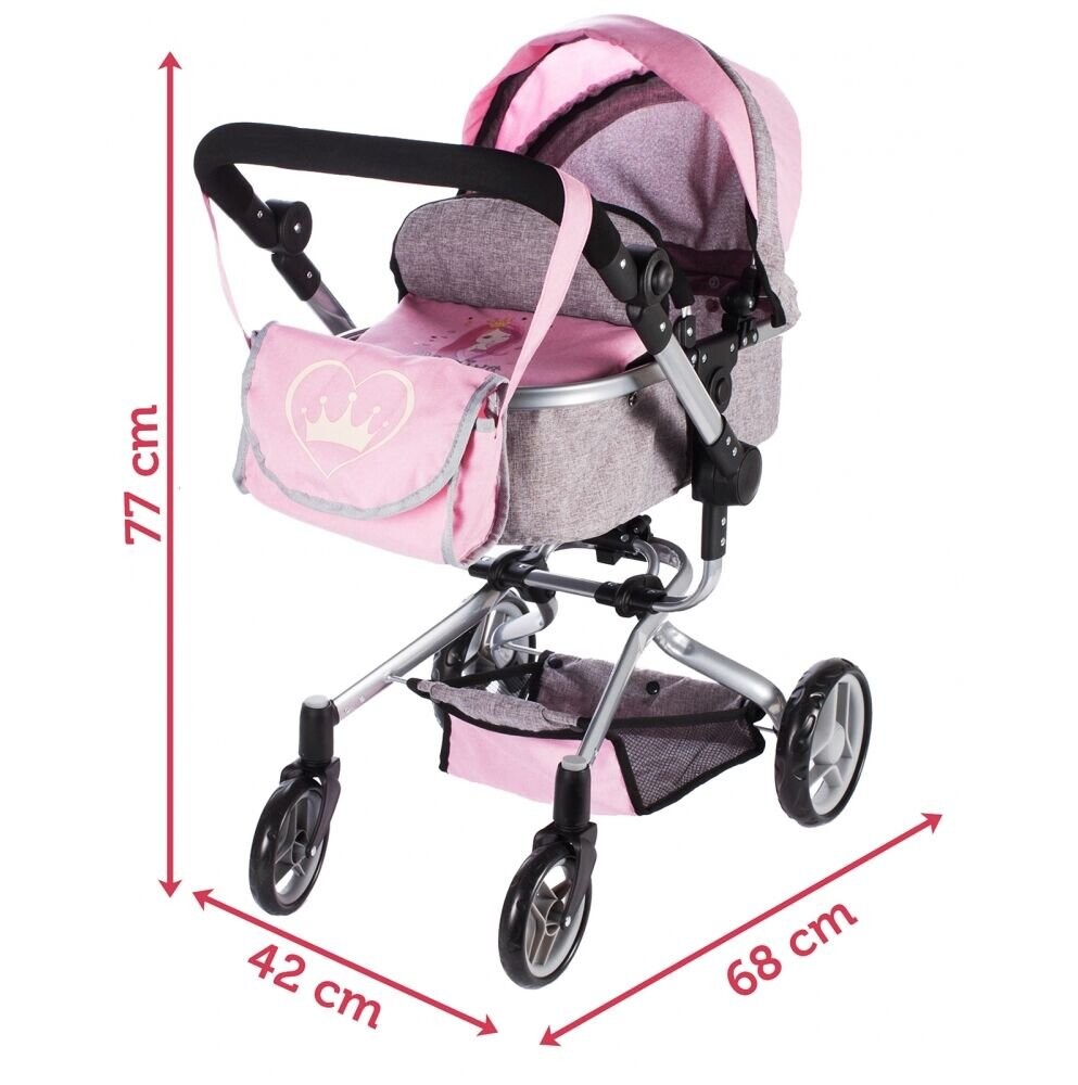 Каждая маленькая девочка любит гулять со своими куклами. Теперь он может взять их с собой на прогулку в этой очаровательной коляске. Чехол коляски, переноска и сумка изготовлены из очень прочного и тщательно сшитого материала. Коляска чрезвычайно функциональна и очень легко складывается, поэтому ее можно быстро и легко трансформировать в коляску. Версия коляски также имеет ремни безопасности - как в настоящей детской коляске! Что отличает коляску от других?