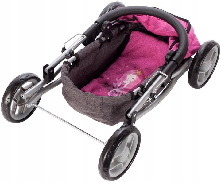 Коляску легко сложить. В сложенном виде занимает мало места. Дополнительно замок коляски защищает от автоматического складывания. что делает развлечение очень безопасным.Вставка с мотивом принцессы