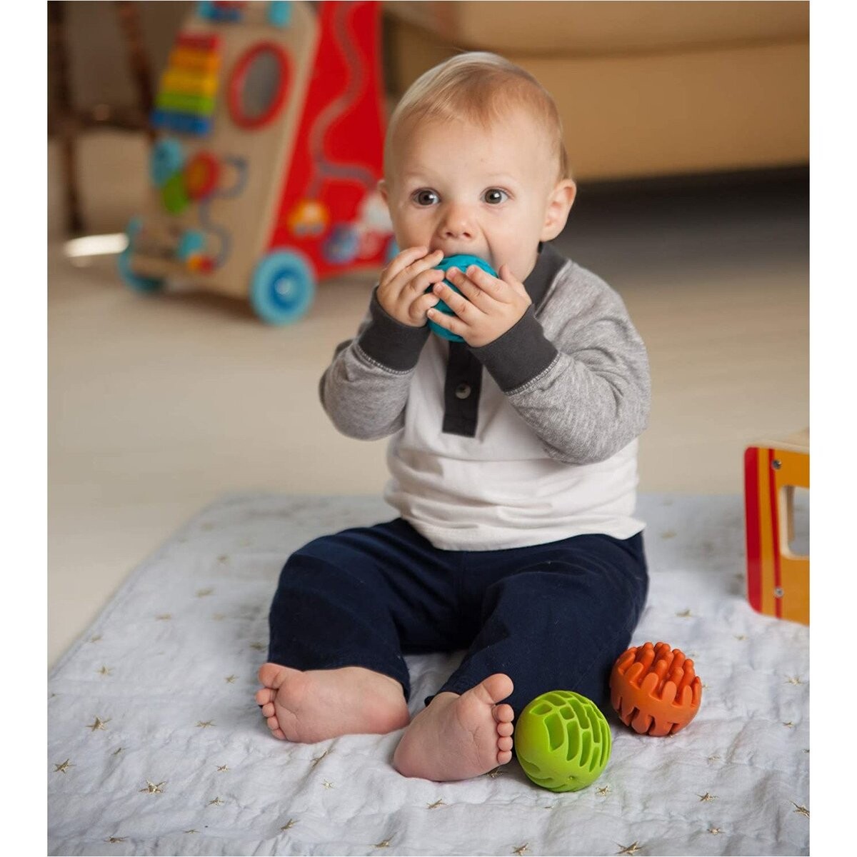 Каждый раз переместите мяч, малыш услышит нежный звоночек.
