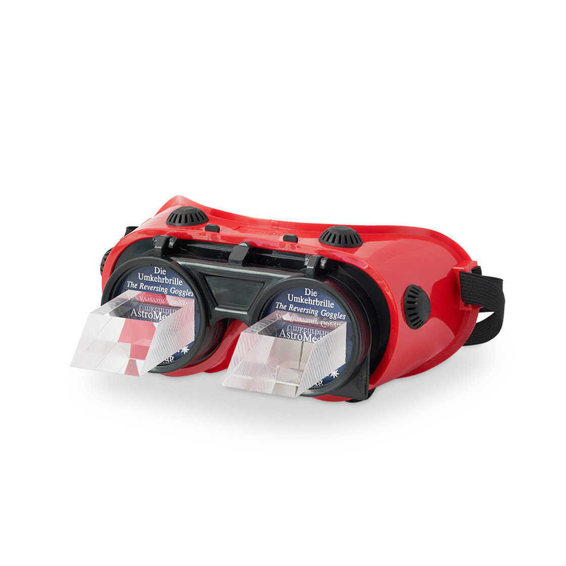Пластиковые очки оснащены двумя призмами Dove, которые переворачивают просматриваемое через них изображение. В зависимости от положения призм мы видим окружающий мир «перевернутым» или перевернутым «влево/вправо».
