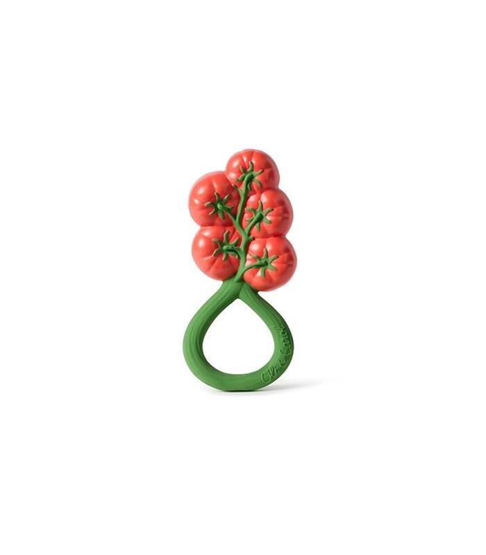 Прорезыватель-погремушка Oli & Carol Tomatoes изготовлен из 100% натурального каучука и расписан вручную натуральными растительными пигментами. Это идеальная игрушка для купания, массажа десен во время прорезывания зубов и сенсорных игр.