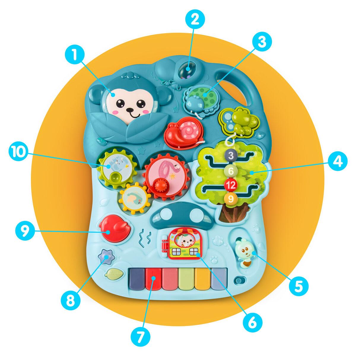Помимо обучения ходить, изделие идеально подходит для изучение чисел, цветов и форм. Съемная панель (чтобы снять панель, нажмите кнопку, расположенную в нижней части конструкции. для освобождения улова) можно использовать как развивающую доску, а приставив к ней ножки, она быстро превращается в развивающий стол.
