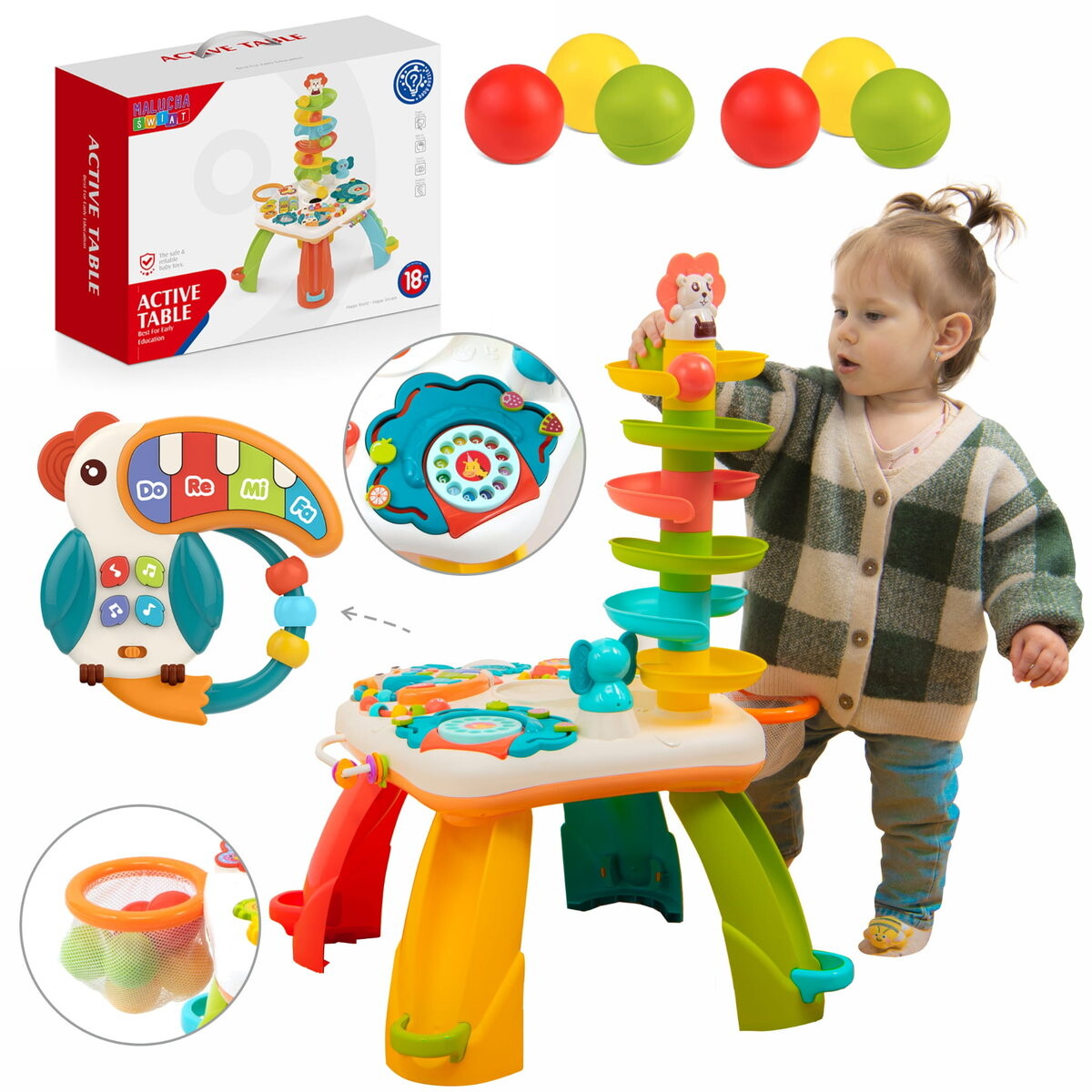Интерактивный Стол 2В1 Учебная Панель + Башня Горка Для Шаров Inna marka