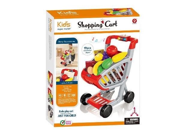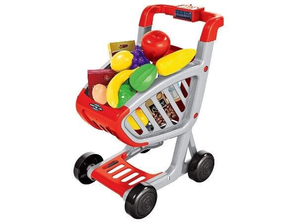 Набор состоит из легкой тележки для покупок и 28 пищевых аксессуаров. Коляска выполнена в сером и красном цветах. У него есть колеса и просторная корзина, в которую поместятся все покупки малыша. Дополнительную привлекательность во время игры обеспечат световые и звуковые эффекты, размещенные в ручке. В набор входят различные продукты питания, в том числе: овощи, фрукты, рыба, яйца, бутылки, картонные коробки и банки. Интерактивная тележка для покупок подарит детям множество идей для игр. Она также может служить местом для хранения детских сокровищ и игрушек. Требуется использование 3 батареек AG13 (входят в комплект).