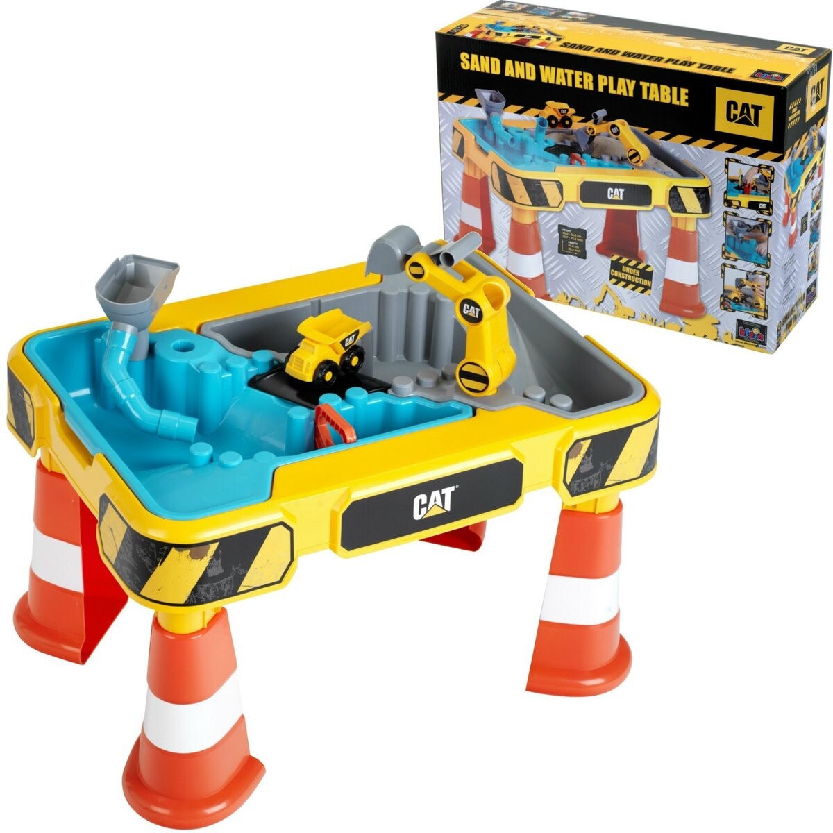 Большой стол для игры с песком и водой из серии CAT. Помимо двух мисок и платформы на ножках, в набор входят аксессуары, которые разнообразят веселье. Кляйн 3237 .Игровой стол CAT с песком и водой